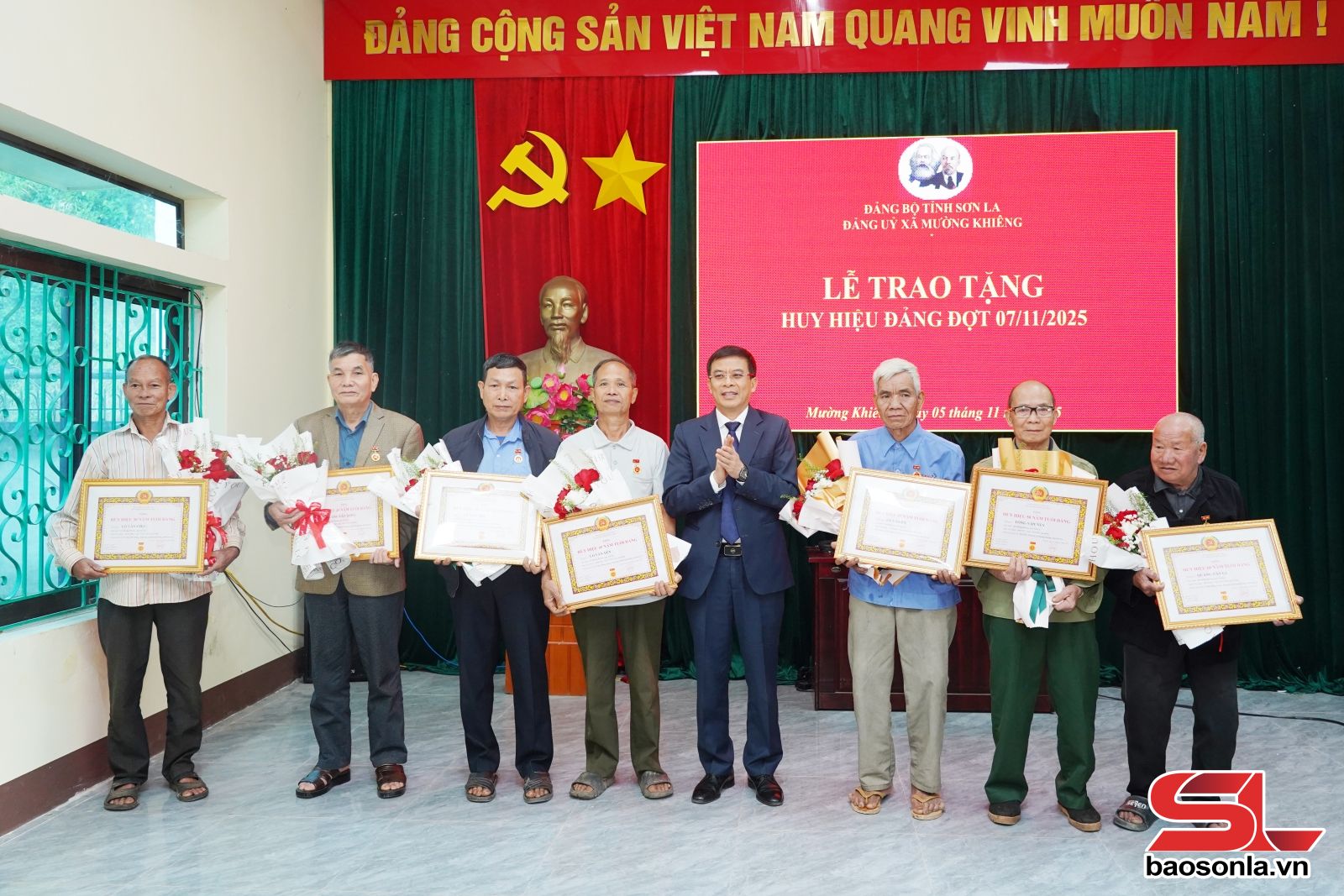 Đợt 7/11, Đảng bộ xã Mường Khiêng có 7 đảng viên được nhận Huy hiệu Đảng. Đồng chí Đào Tài Tuệ đã trao Huy hiệu 60 năm tuổi Đảng cho đảng viên Quàng Văn Cu, Chi bộ bản Mồng Luông; Huy hiệu 50 năm tuổi Đảng cho đảng viên Tòng Văn Nến, Chi bộ bản Hốc; Huy hiệu 45 năm tuổi Đảng cho đảng viên Lò Văn Ún, Chi bộ bản Lụ; Huy hiệu 40 năm tuổi Đảng cho các đảng viên Cà Văn Phe, Chi bộ bản Co Phường; Lò Văn Yên, Chi bộ bản Mồng Luông; Quàng Văn Long, Chi bộ bản Lứa Hang; Huy hiệu 30 năm tuổi Đảng cho đảng viên Lò Văn Chơ, Chi bộ bản Phé Hằng.