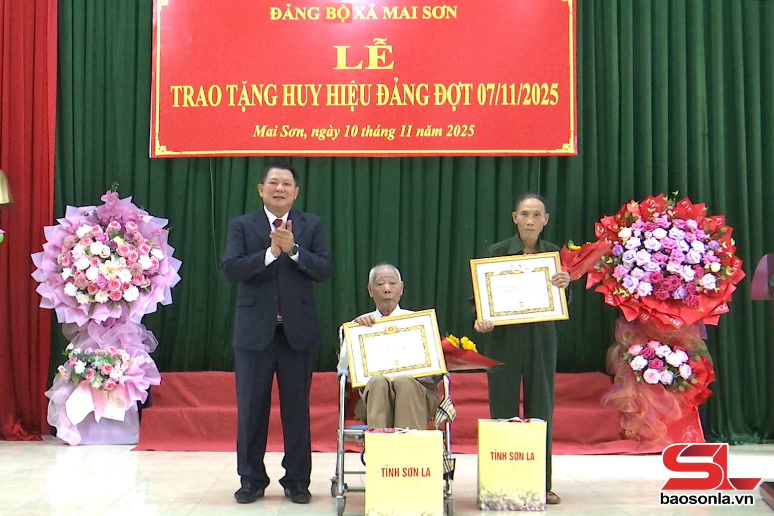 Trong đợt này, Đảng bộ xã Mai Sơn có 21 đảng viên được trao tặng Huy hiệu Đảng từ 30 năm đến 70 năm. Trong đó, các đảng viên: Nghiêm Xuân Phiu, Chi bộ tiểu khu 3/2 và Nguyễn Viết Tá, Chi bộ tiểu khu 18 vinh dự nhận Huy hiệu 70 năm tuổi Đảng; 1 đảng viên được nhận Huy hiệu 65 năm tuổi Đảng; 2 đảng viên được nhận Huy hiệu 60 năm tuổi Đảng; 1 đảng viên được nhận Huy hiệu 55 năm tuổi Đảng; 1 đảng viên được nhận Huy hiệu 50 năm tuổi Đảng; 2 đảng viên được nhận Huy hiệu 45 năm tuổi Đảng; 7 đảng viên được nhận Huy hiệu 40 năm tuổi Đảng và 7 đảng viên được nhận Huy hiệu 30 năm tuổi Đảng.