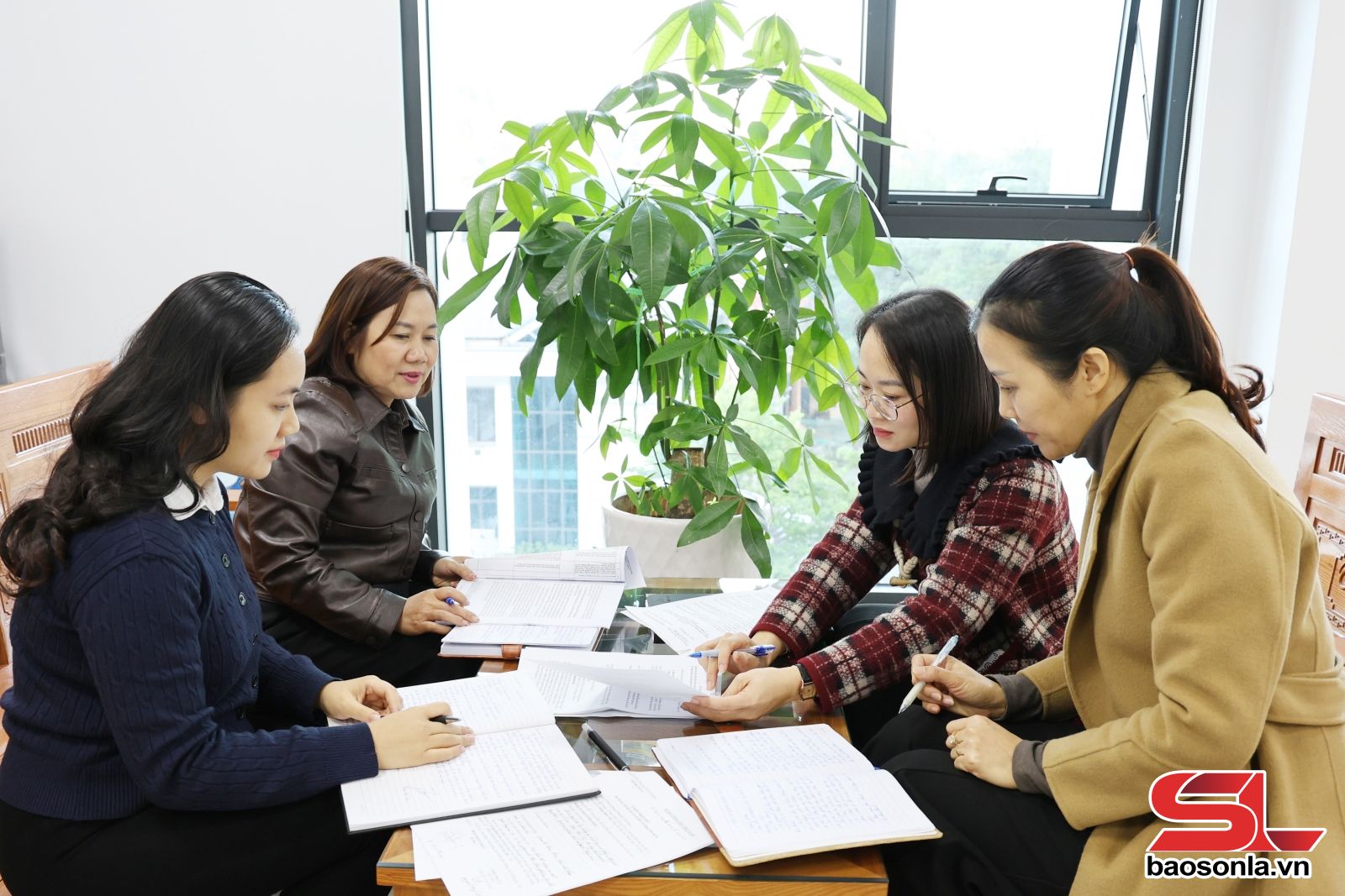 Cán bộ Ủy ban Kiểm tra Đảng ủy phường Tô Hiệu trao đổi nghiệp vụ công tác.