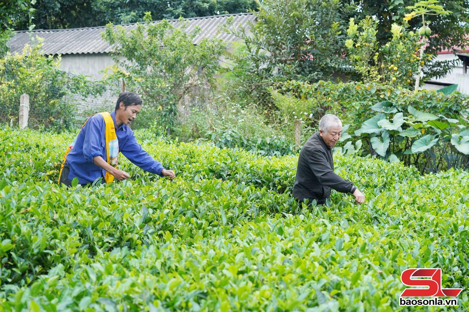 Nông dân bản Kiến Xương, xã Bình Thuận thu hái chè.