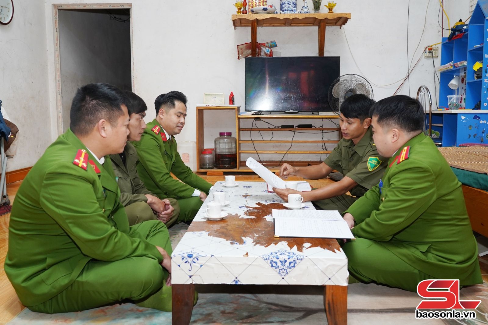 Công an xã Bình Thuận trao đổi tình hình an ninh trật tự trên địa bàn bản Kiến Xương.