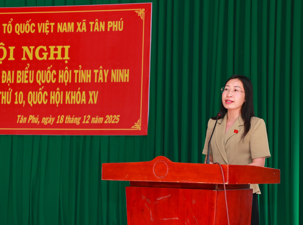 Tại buổi tiếp xúc, Phó Trưởng đoàn chuyên trách Hoàng Thị Thanh Thuý thông tin đến cử tri kết quả Kỳ họp thứ 10, Quốc hội khóa XV và hoạt động của Đoàn ĐBQH tỉnh tại kỳ họp diễn ra từ ngày 20/10 đến ngày 11/12 tại Thủ đô Hà Nội. Theo đó, Quốc hội thông qua 51 luật và 39 nghị quyết, tạo nền tảng pháp lý cho phát triển kinh tế - xã hội.
