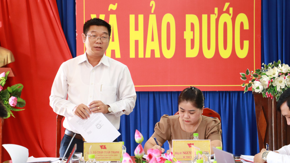 Phát biểu tại kỳ họp, Tỉnh ủy viên, Phó Trưởng ban Thường trực Ban Tuyên giáo và Dân vận Tỉnh ủy Võ Trần Tuấn Thanh thống nhất với các đề xuất đưa ra tại hội nghị; đồng thời đề nghị xã tiếp thu đầy đủ các ý kiến đóng góp, sớm hoàn thiện các văn bản đã được cho ý kiến để tổ chức triển khai thực hiện hiệu quả, góp phần thực hiện thắng lợi các mục tiêu, nhiệm vụ phát triển kinh tế – xã hội, xây dựng Đảng và hệ thống chính trị tại địa phương.