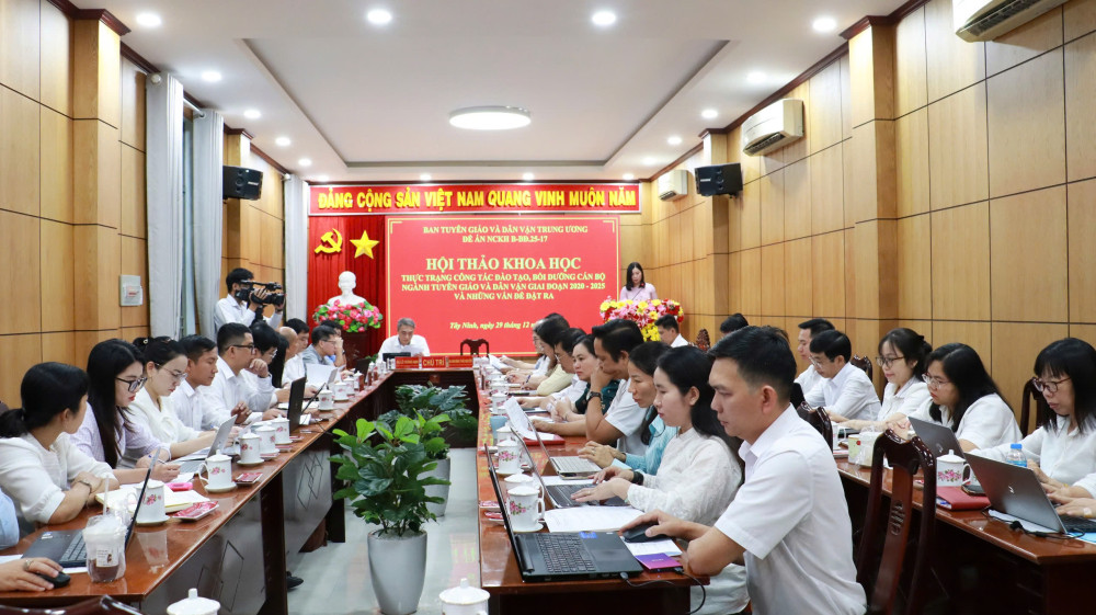 Hội thảo là một phần quan trọng trong lộ trình thực hiện Đề án khoa học cấp Bộ giai đoạn 2025-2026: "Đổi mới công tác đào tạo, bồi dưỡng cán bộ ngành Tuyên giáo và Dân vận trong tình hình mới". Tại đây, đại biểu tập trung thảo luận sâu vào các nhóm vấn đề cốt lõi, như: Làm rõ các yêu cầu mới về trình độ, kỹ năng của cán bộ Tuyên giáo và Dân vận hiện đại; bài học kinh nghiệm từ thực tiễn đào tạo tại các địa phương giai đoạn 2020-2025; tập trung vào việc đa dạng hóa hình thức bồi dưỡng và nâng cao kỹ năng tác nghiệp trong môi trường chuyển đổi số;…