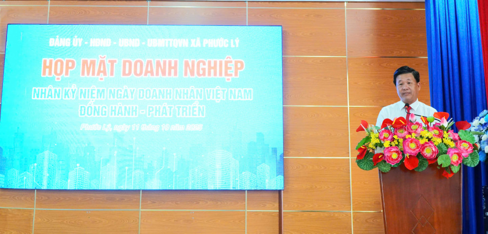 Phát biểu tại cuộc họp mặt, Bí thư Đảng ủy, Chủ tịch HĐND xã Phước Lý Nguyễn Hoàng Lâm ghi nhận, cảm ơn những đóng góp tích cực của các doanh nghiệp trong thời gian qua vì sự phát triển chung của xã. Chính quyền địa phương cam kết sẽ luôn đồng hành, lắng nghe, hỗ trợ và tạo điều kiện thuận lợi nhất để cộng đồng doanh nghiệp yên tâm đầu tư, phát triển lâu dài. Song song đó, phấn đấu, nỗ lực thực hiện vì mục tiêu chung: “Phước Lý phát triển - Doanh nghiệp thịnh vượng - Nhân dân ấm no hạnh phúc”.