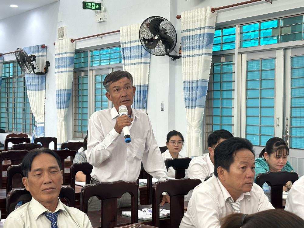 Bí thư Đảng ủy, Chủ tịch HĐND xã Lê Văn Nhãn; Phó Bí thư Thường trực Đảng ủy xã Võ Minh Dương; Phó Bí thư Đảng ủy, Chủ tịch UBND xã Nguyễn Chí Thành đồng chủ trì hội nghị.