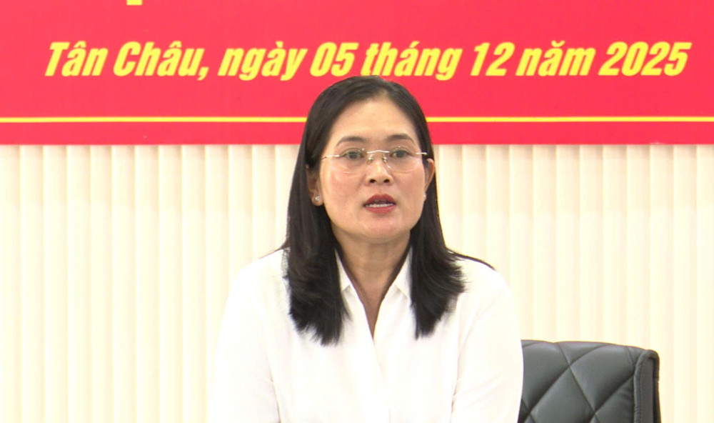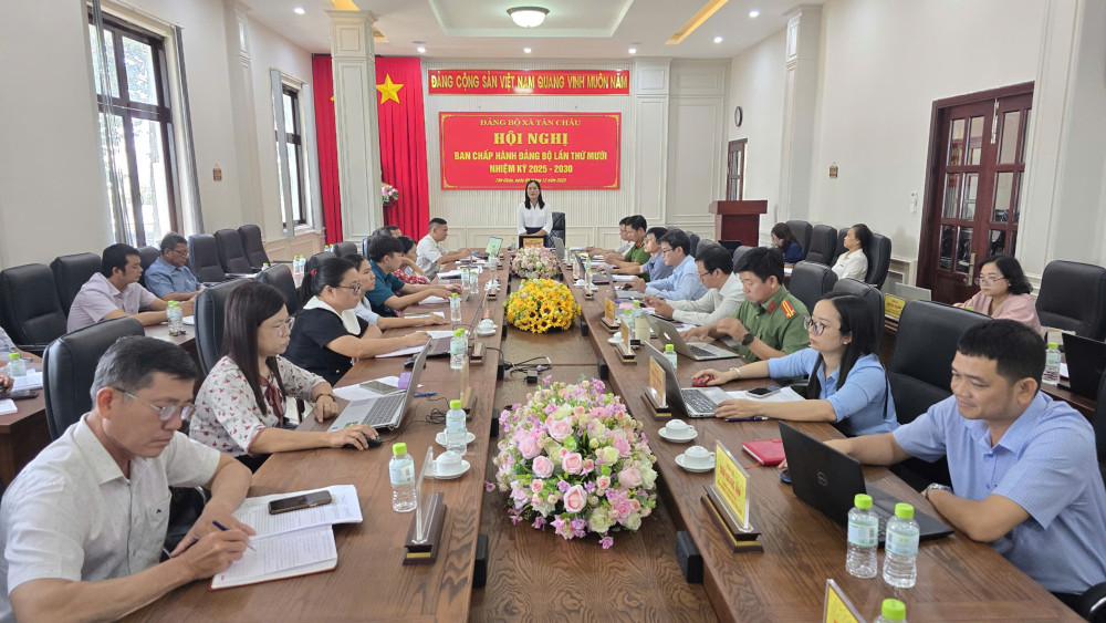 Sáng 05/12, Đảng bộ xã Tân Châu, tỉnh Tây Ninh tổ chức Hội nghị Ban Chấp hành lần thứ 10, nhiệm kỳ 2025-2030. Bí thư Đảng ủy, Chủ tịch HĐND xã Tân Châu Trần Thị Thanh Hằng chủ trì hội nghị.