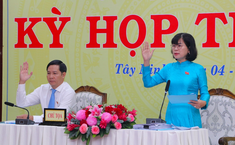 Thay mặt UBND tỉnh, đồng chí Nguyễn Thanh Ngọc – Chủ tịch UBND tỉnh thông qua tờ trình đề nghị HĐND tỉnh xem xét, quyết định miễn nhiệm chức vụ Ủy viên UBND tỉnh Tây Ninh, nhiệm kỳ 2021-2026 đối với đồng chí Nguyễn Tấn Tài – Nguyên Giám đốc Sở Giao thông vận tải, lý do nghỉ hưu theo chế độ; Đồng thời, đề nghị HĐND tỉnh xem xét, bầu bổ sung Ủy viên UBND tỉnh Tây Ninh, nhiệm kỳ 2021-2026 đối với đồng chí Nguyễn Hoàng Nam – Chánh Thanh tra và đồng chí Đỗ Hồng Sơn – Giám đốc Sở Y tế.