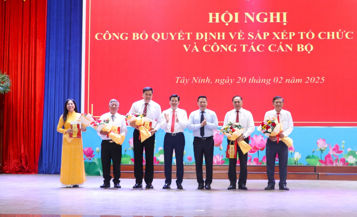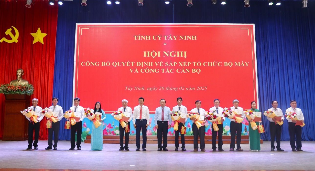 Tại Hội nghị, Ban Thường vụ Tỉnh ủy Tây Ninh công bố 6 quyết định, nghị quyết về sắp xếp tổ chức bộ máy; công bố 8 quyết định về điều động, bổ nhiệm, luân chuyển, chỉ định cán bộ.
