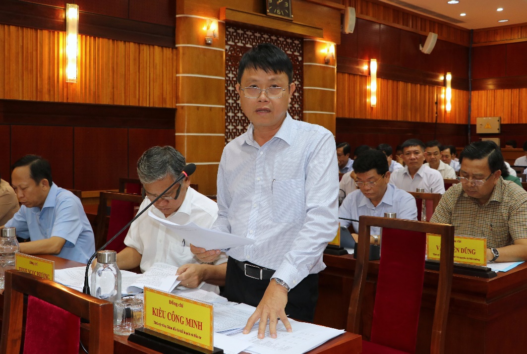 Giám đốc Sở Kế hoạch và Đầu tư Kiều Công Minh đại diện Nhóm soạn thảo Văn kiện báo cáo nội dung đánh giá tình hình thực hiện Nghị quyết XI Đảng bộ tỉnh