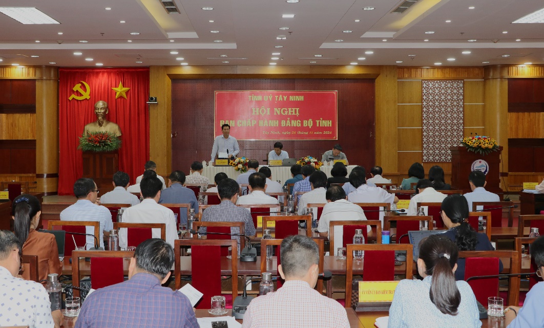 Phát biểu chỉ đạo tại Hội nghị, đồng chí Nguyễn Thành Tâm – Bí thư Tỉnh ủy, Chủ tịch HĐND tỉnh đề nghị các uỷ viên Ban Chấp hành Đảng bộ tỉnh tiếp tục đóng góp ý kiến và các nhóm soạn thảo Văn kiện tiếp tục rà soát, bổ sung để hoàn thiện dự thảo văn kiện. Trong đó, mục tiêu phát triển bám sát định hướng của Trung ương gắn với thực tế của địa phương cùng một số địa phương có sự tương đồng với tỉnh Tây Ninh; đề xuất các đột phá phù hợp điều kiện, tình hình của địa phương; phấn đấu mức tăng trưởng cao hơn mức bình quân chung của cả nước.