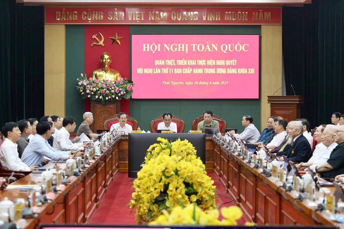 Tại Hội nghị Trung ương 11 khoá XIII, Ban Chấp hành Trung ương Đảng đã làm việc với tinh thần rất khẩn trương, nghiêm túc, trách nhiệm, thảo luận hết sức dân chủ, lắng nghe, trao đổi thẳng thắn nhiều vấn đề mới, hệ trọng và thống nhất rất cao những nội dung lớn, cốt lõi. Có thể nói, đây là hội nghị mang tính lịch sử, quyết sách những vấn đề rất quan trọng, đột phá của giai đoạn cách mạng mới, tạo ra khí thế mới, xung lực mới cho sự nghiệp đổi mới toàn diện, đưa đất nước bước vào kỷ nguyên phát triển mới. Trên cơ sở thống nhất tuyệt đối, Trung ương đã ban hành Nghị quyết số 60-NQ/TW, ngày 12/4/2025 với nhiều nội dung đặc biệt quan trọng, tập trung là 2 nhóm vấn đề tiếp tục sắp xếp tinh gọn tổ chức bộ máy, sắp xếp đơn vị hành chính, tổ chức chính quyền địa phương 2 cấp và chuẩn bị cho Đại hội XIV của Đảng. Những nội dung này có liên quan chặt chẽ với nhau và đều là những vấn đề trọng tâm, cấp bách mà chúng ta phải tập trung thực hiện ngay sau Hội nghị này đến hết năm 2025.