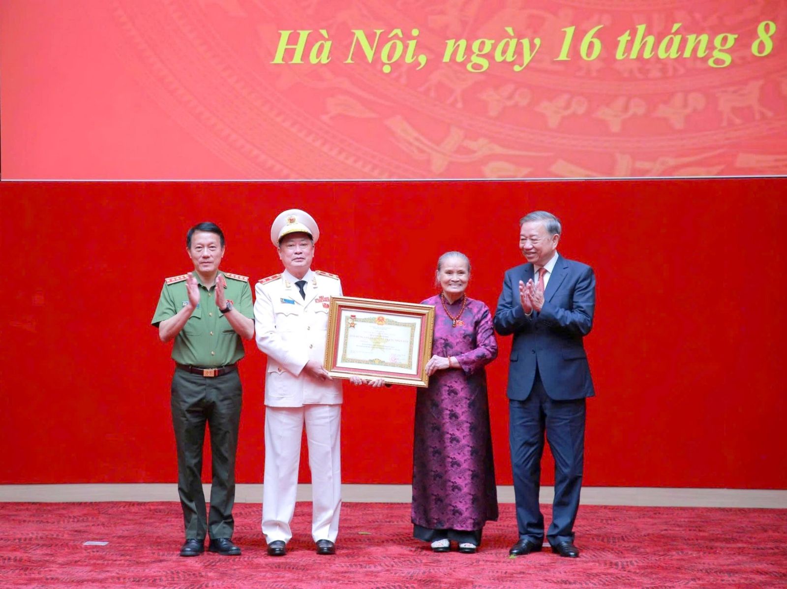 Thay mặt lãnh đạo Đảng, Nhà nước, Tổng Bí thư Tô Lâm trân trọng tri ân và trao danh hiệu Anh hùng lực lượng vũ trang nhân dân đối với Cố Bộ trưởng Lê Minh Hương cho gia đình Cố Bộ trưởng.