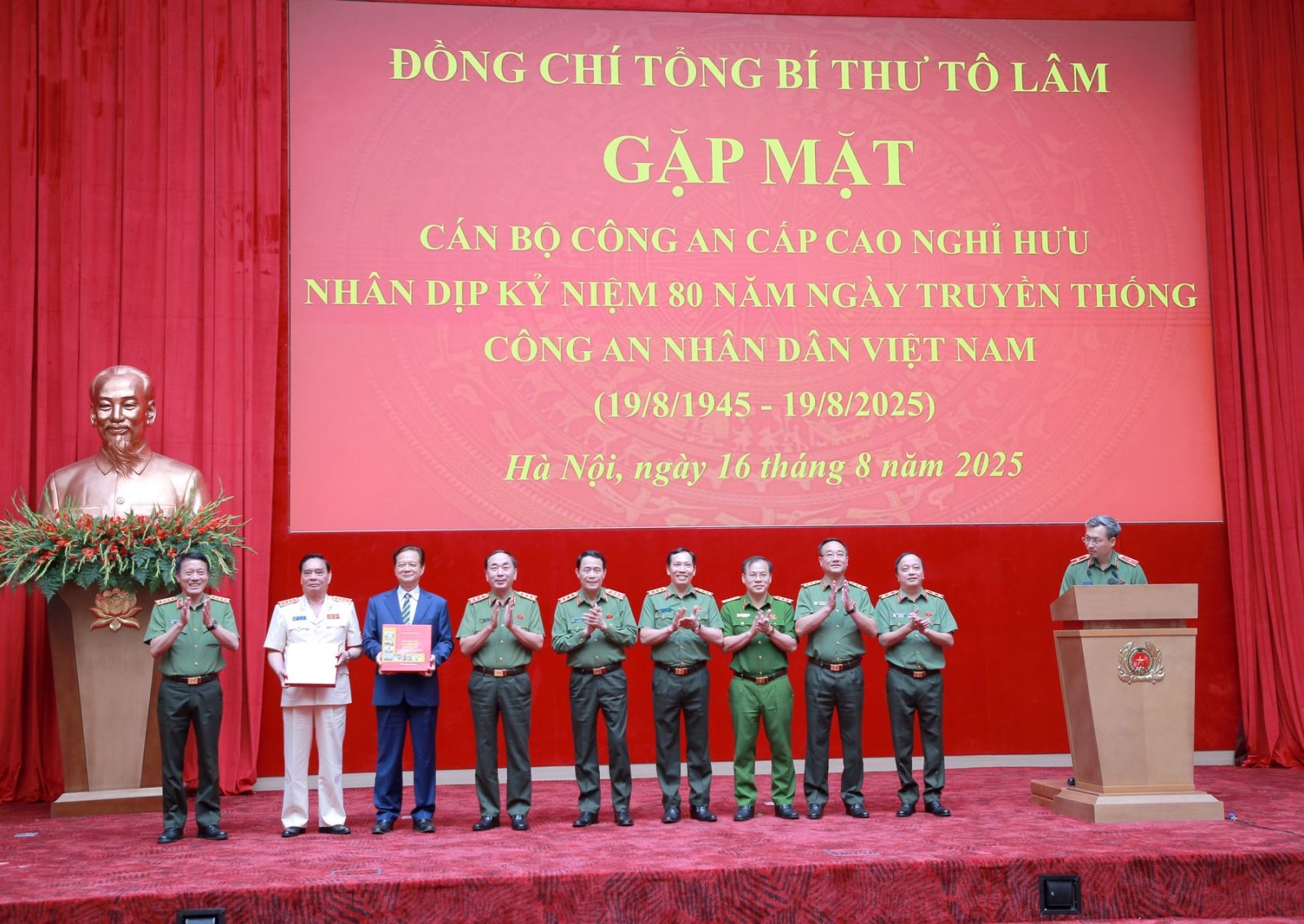 (ĐCSVN) – Ngày 16/8, Tổng Bí thư Tô Lâm đã tới dự Lễ khánh thành Trụ sở Bộ Công an, số 96 Nguyễn Du, phường Cửa Nam, thành phố Hà Nội và gặp mặt cán bộ Công an cấp cao qua các thời kỳ nhân dịp kỷ niệm 80 năm Ngày truyền thống Công an nhân dân (19/8/1945-19/8/2025), 20 năm Ngày hội toàn dân bảo vệ an ninh Tổ quốc (19/8/2005-19/8/2025) và truy tặng danh hiệu Anh hùng lực lượng vũ trang nhân dân đối với Cố Bộ trưởng Lê Minh Hương.