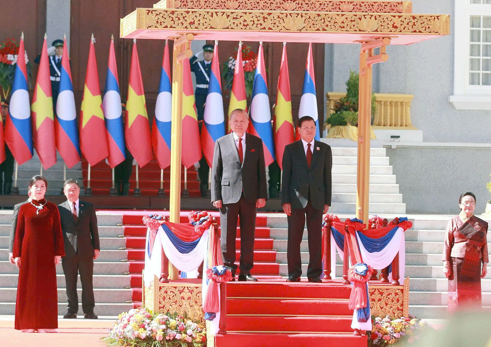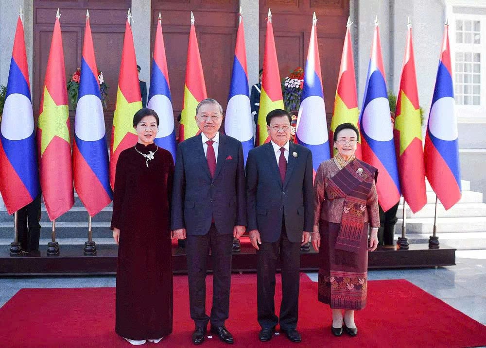(ĐCSVN) – Sáng 1/12, tại Thủ đô Viêng Chăn, Tổng Bí thư, Chủ tịch nước Lào Thongloun Sisoulith cùng Phu nhân đã tổ chức Lễ đón trọng thể cấp Nhà nước Tổng Bí thư Tô Lâm và Phu nhân sang thăm cấp Nhà nước Lào và dự Lễ kỷ niệm 50 năm Quốc khánh Lào.