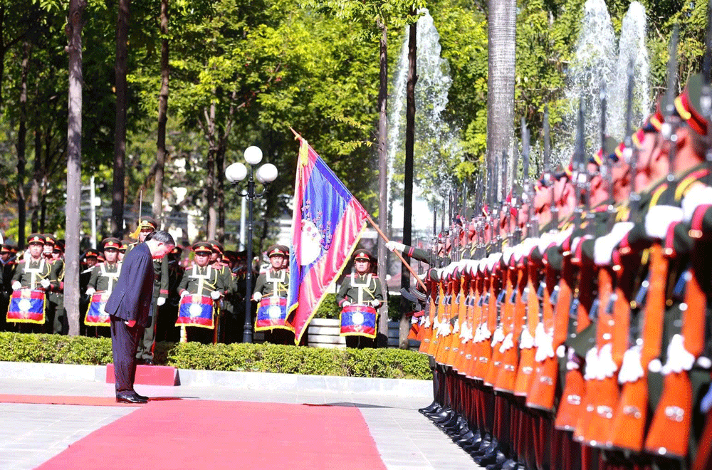 Tổng Bí thư, Chủ tịch nước Lào Thongloun Sisoulith và Tổng Bí thư Tô Lâm duyệt đội danh dự.