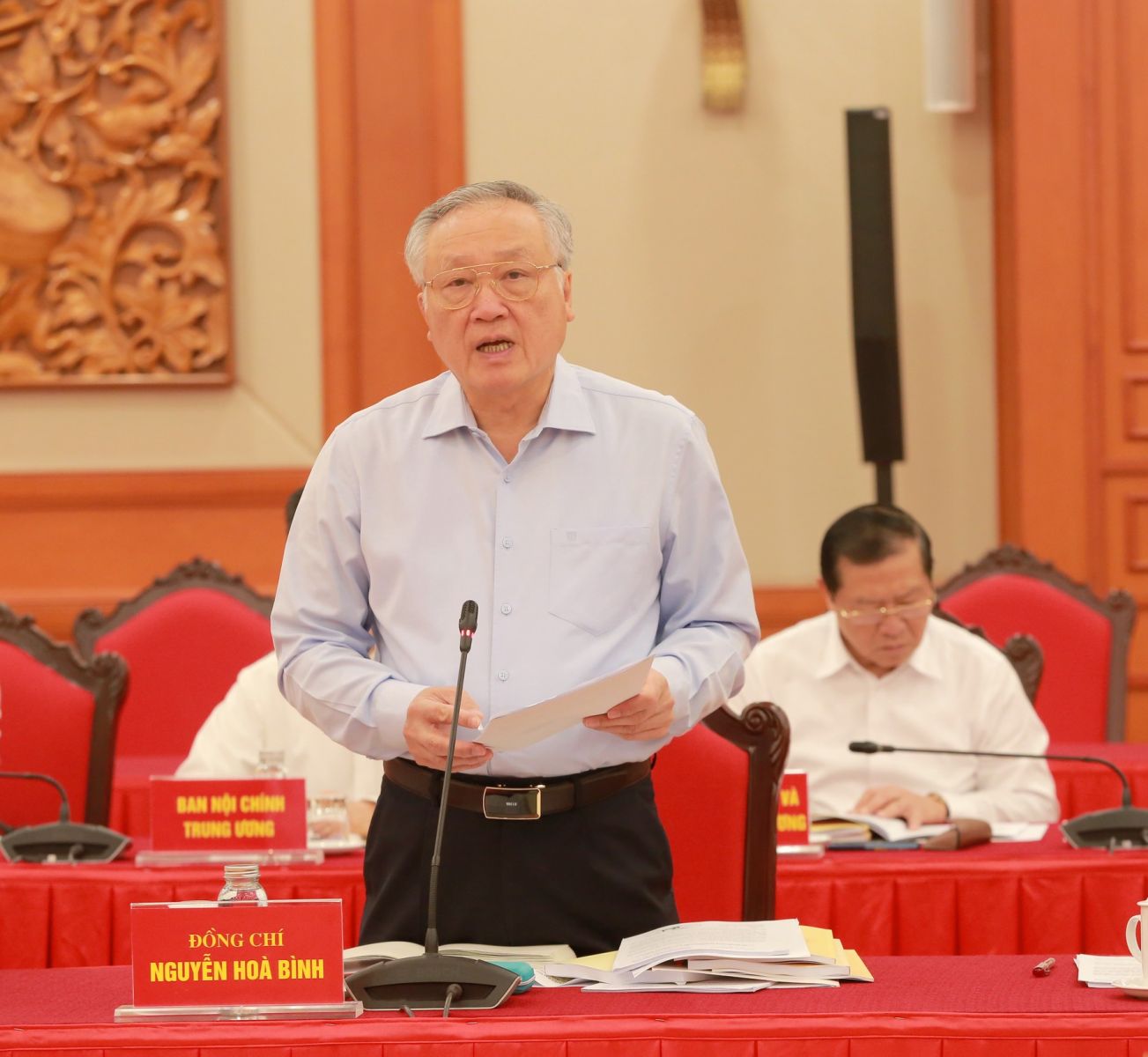 Đồng chí Nguyễn Hòa Bình, Ủy viên Bộ Chính trị, Phó Thủ tướng Thường trực Chính phủ trình bày báo cáo tại buổi làm việc.