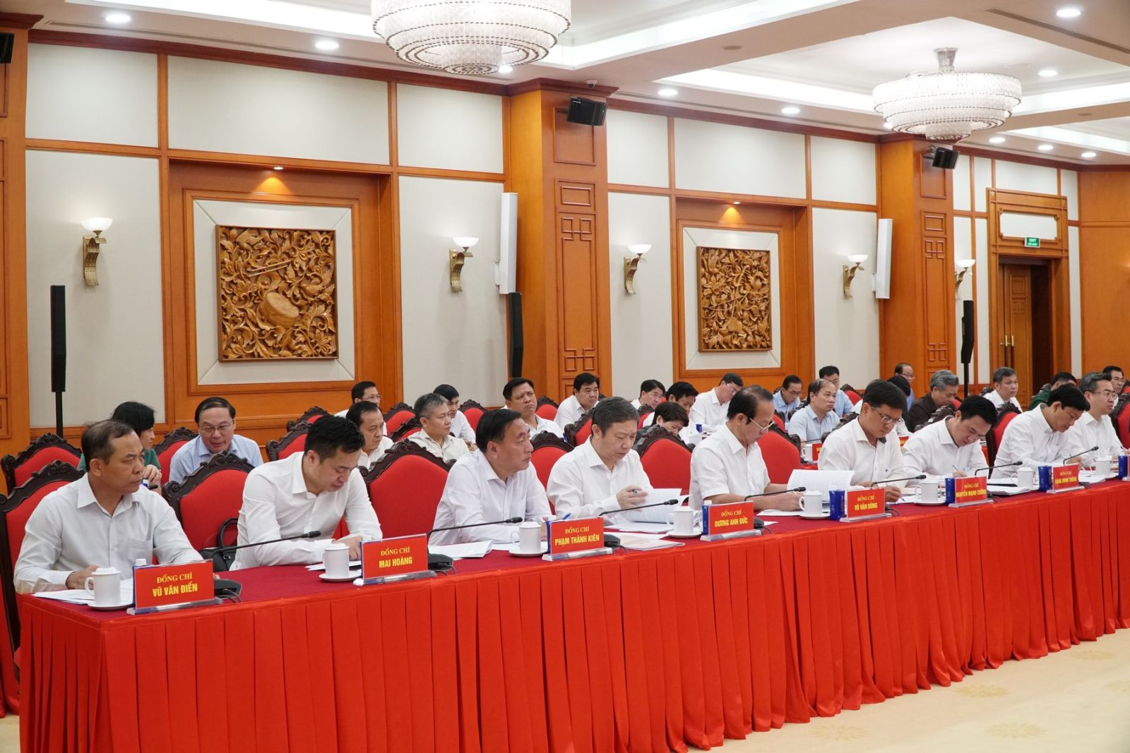 Các đồng chí Ủy viên Bộ Chính trị tại buổi làm việc.