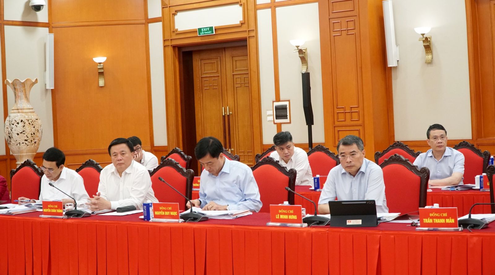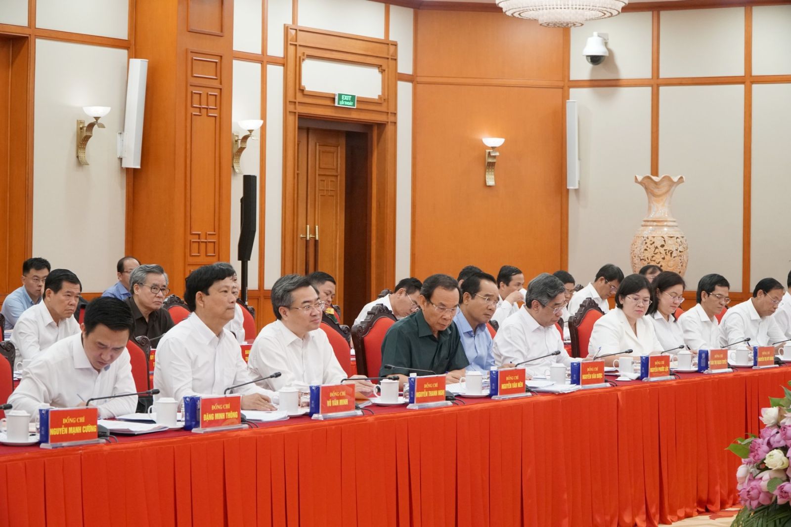 Các đồng chí Ủy viên Ban Thường vụ Thành ủy Thành phố Hồ Chí Minh và các đại biểu tại buổi làm việc.