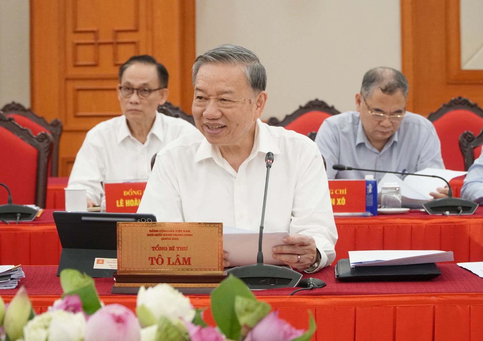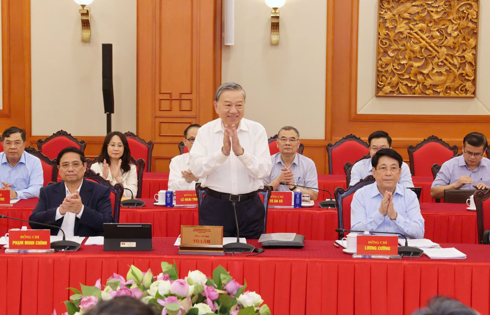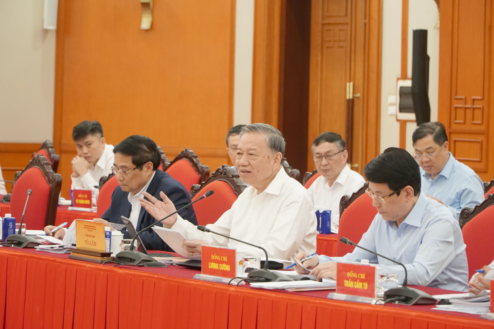Tổng Bí thư Tô Lâm phát biểu gợi ý các nội dung thảo luận tại buổi làm việc.