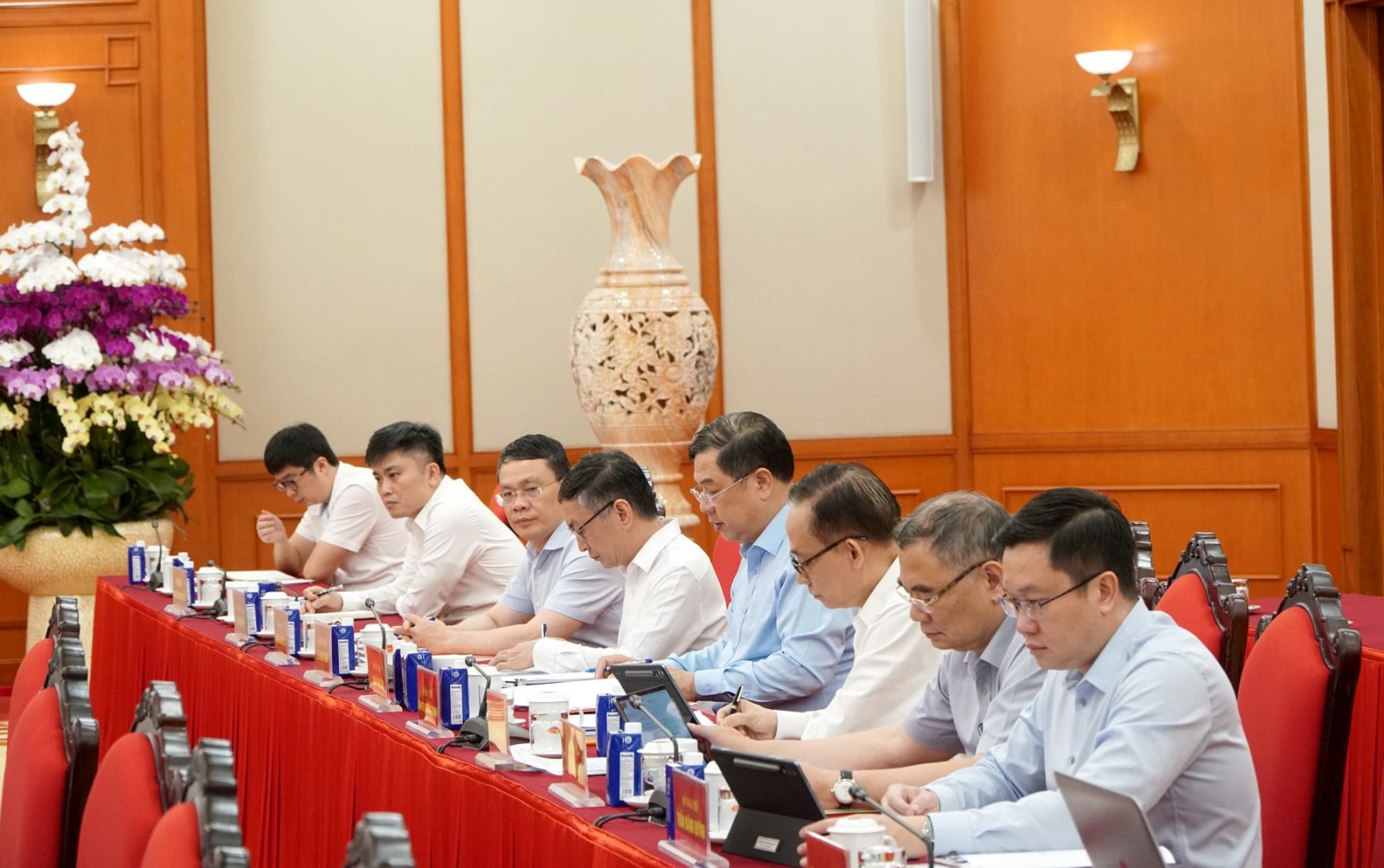 (ĐCSVN) - Chiều 21/8, tại Trụ sở Trung ương Đảng, Tập thể Bộ Chính trị đã có buổi làm việc với Ban Thường vụ Thành ủy Thành phố Hồ Chí Minh để cho ý kiến vào dự thảo các văn kiện và phương án nhân sự cấp ủy trình Đại hội đại biểu Thành phố Hồ Chí Minh, nhiệm kỳ 2025 - 2030. Tổng Bí thư Tô Lâm chủ trì buổi làm việc.