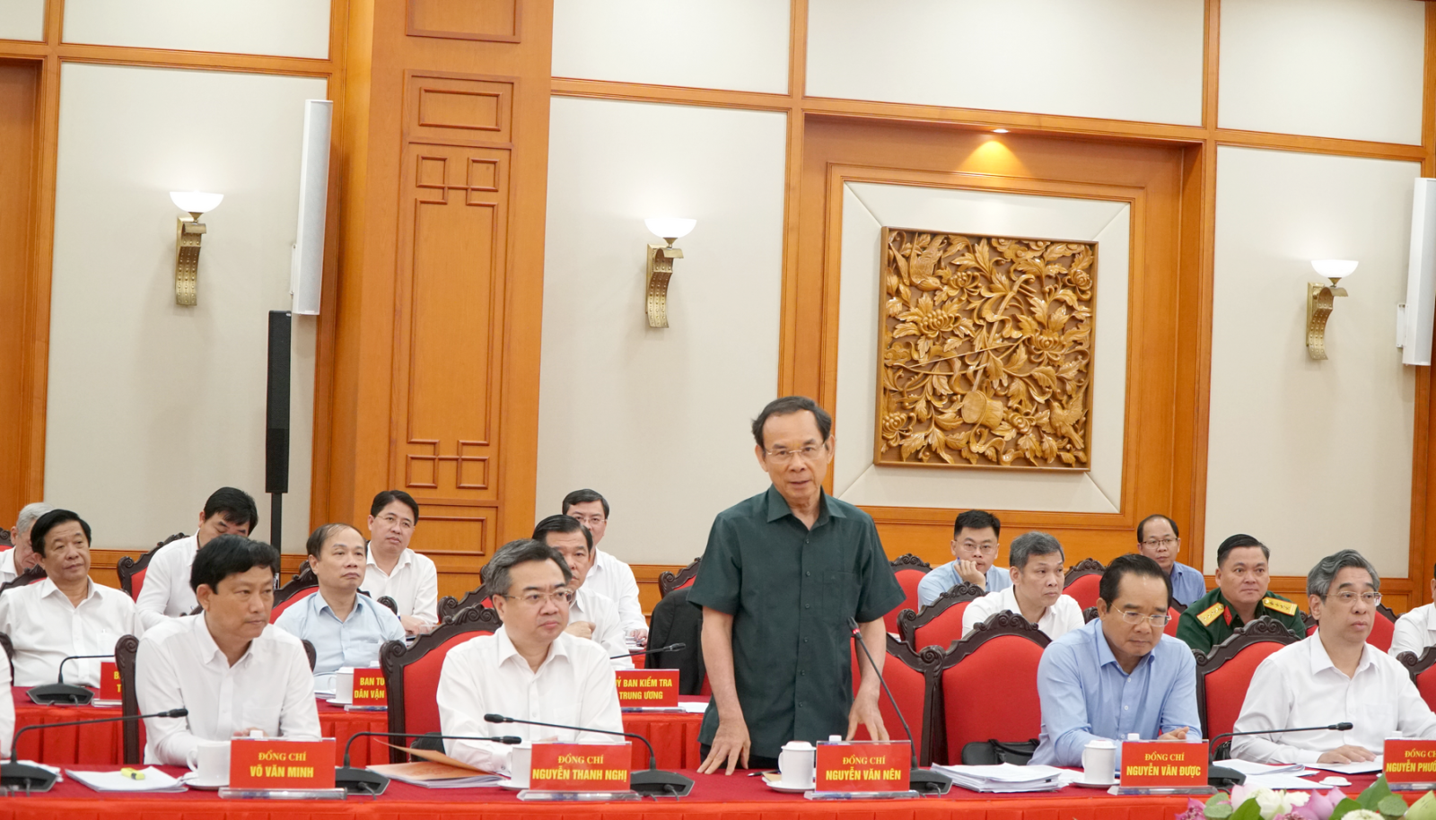 Đồng chí Nguyễn Văn Nên, Ủy viên Bộ Chính trị, Bí thư Thành ủy Thành phố Hồ Chí Minh báo cáo tiếp thu, giải trình tại buổi làm việc.