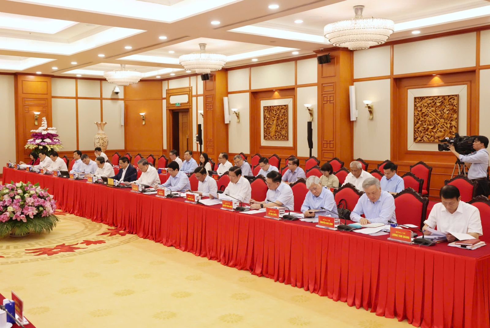 Tổng Bí thư Tô Lâm và các đồng chí Ủy viên Bộ Chính trị tại buổi làm việc.