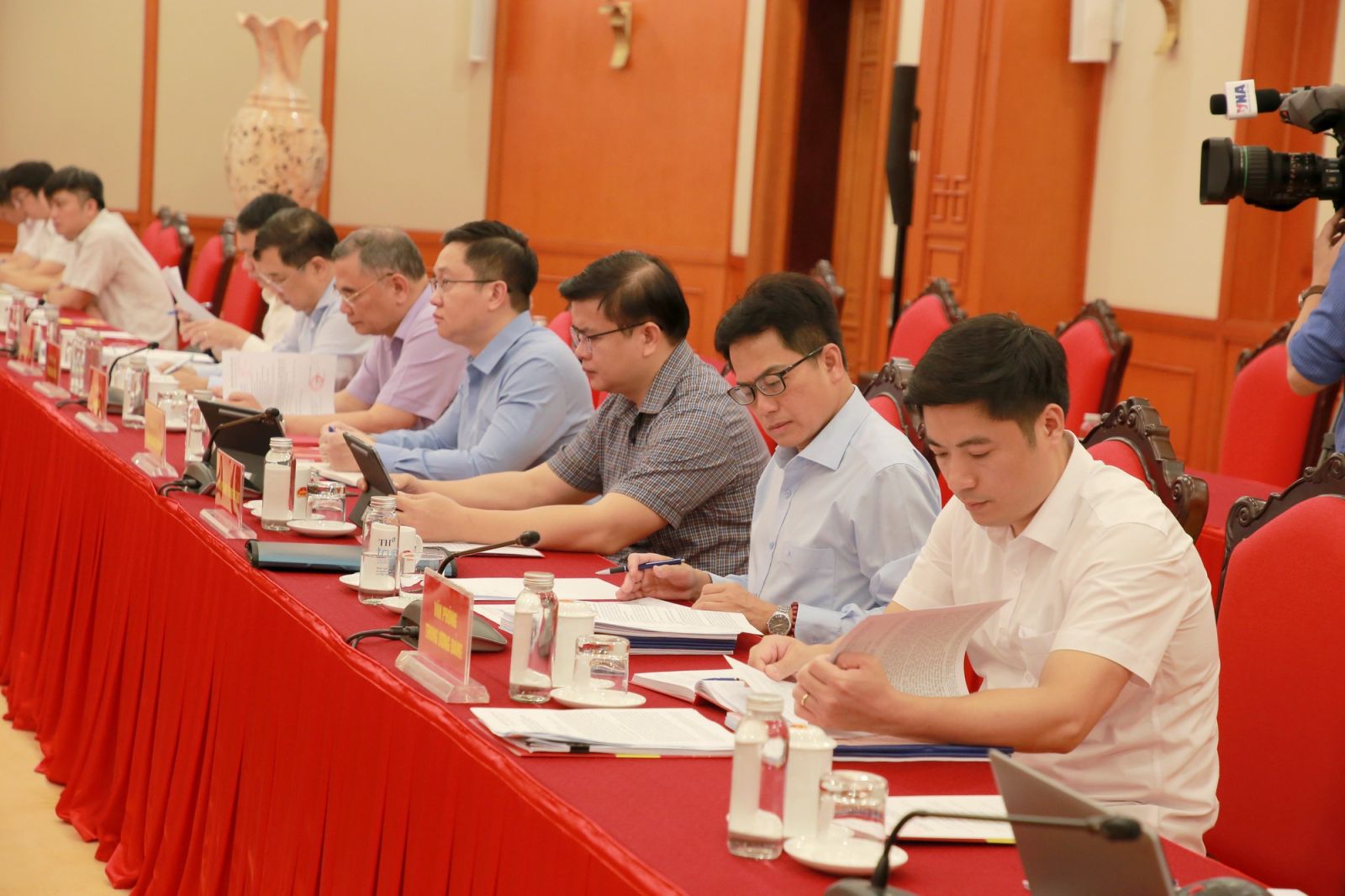 Các đồng chí Ủy viên Bộ Chính trị tại cuộc làm việc.