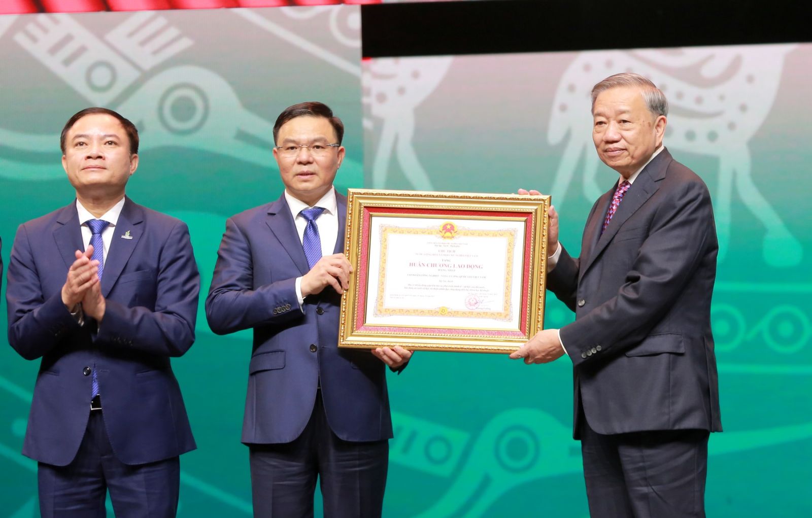 Tổng Bí thư Tô Lâm trao tặng Huân chương Lao động Hạng Nhất cho Tập đoàn công nghiệp - năng lượng Quốc gia Việt Nam.