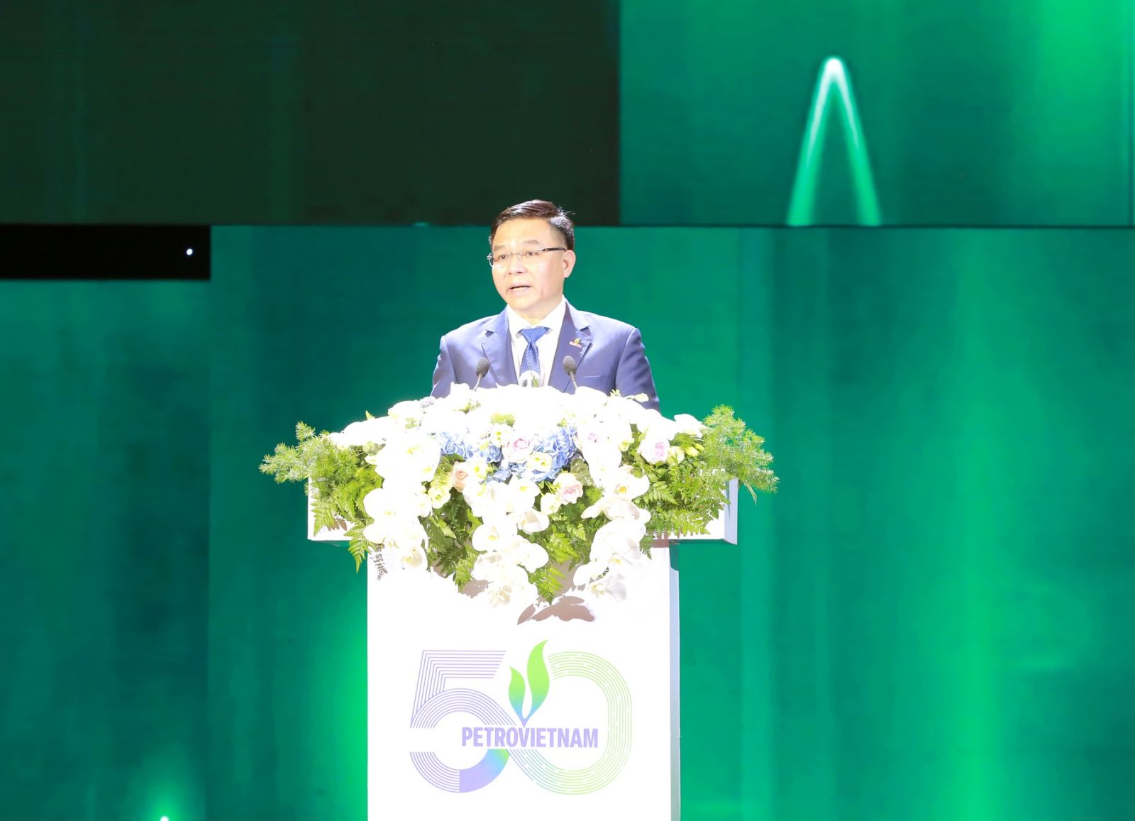 Chủ tịch HĐTV Petrovietnam Lê Mạnh Hùng trình bày Diễn văn Kỷ niệm.