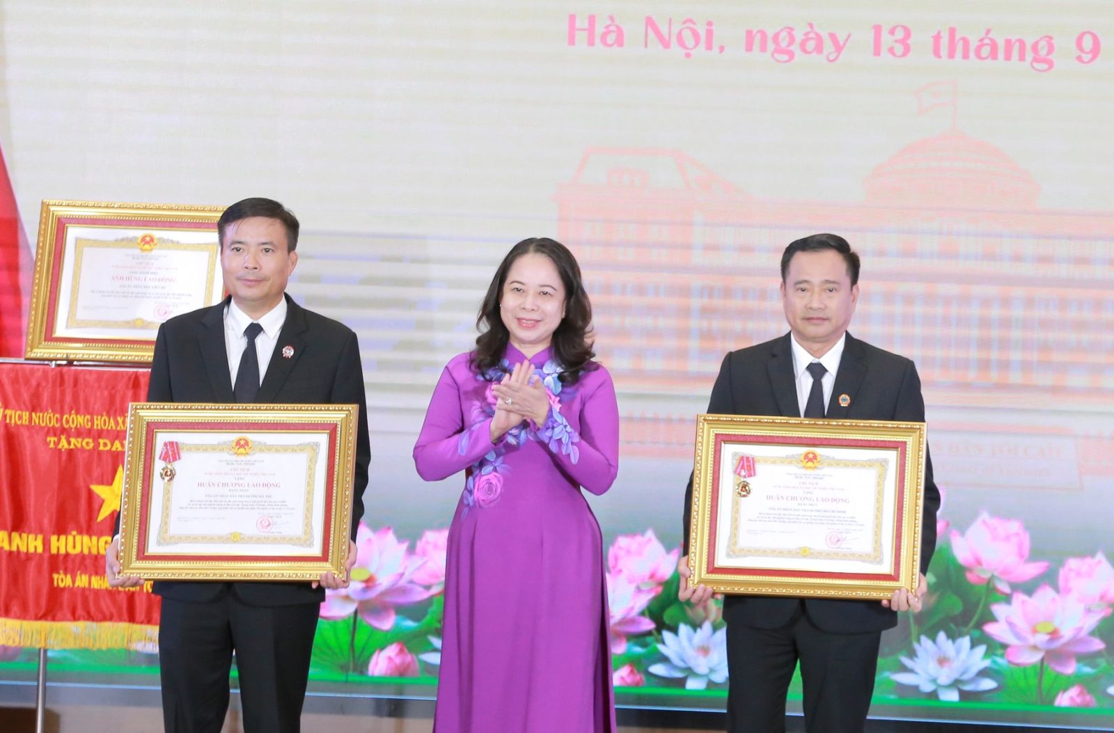 Phó Chủ tịch nước Võ Thị Ánh Xuân trao Huân chương Lao động hạng Nhất tặng Tòa án nhân dân thành phố Hà Nội và Tòa án nhân dân Thành phố Hồ Chí Minh.