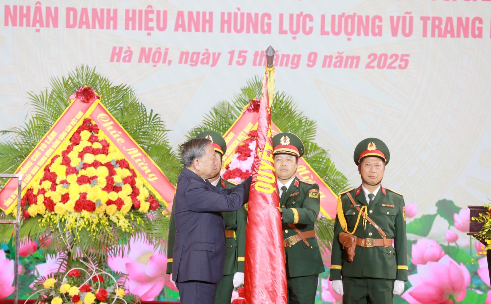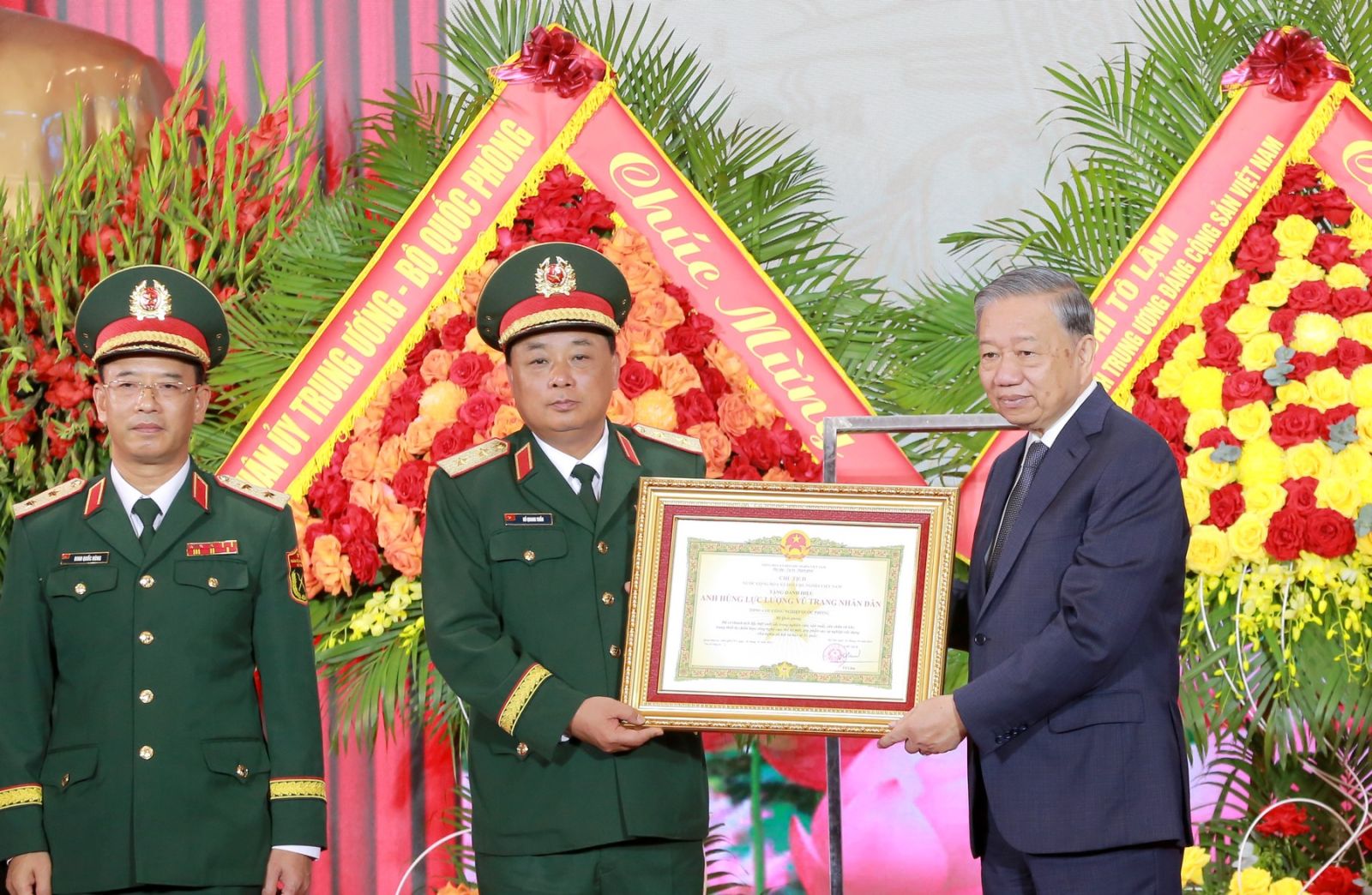 Tổng Bí thư Tô Lâm trao danh hiệu Anh hùng Lực lượng vũ trang nhân dân tặng Tổng cục Công nghiệp quốc phòng.