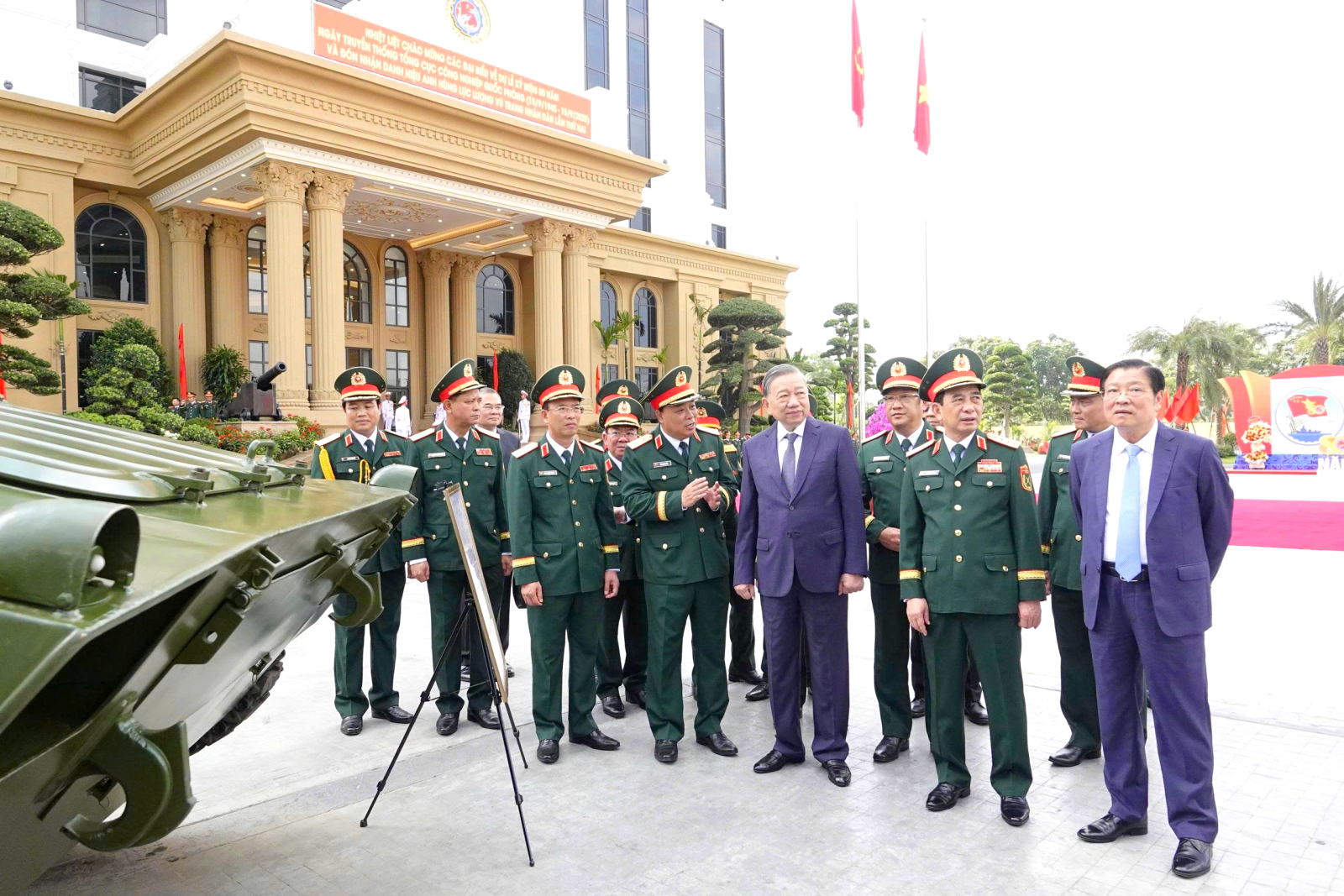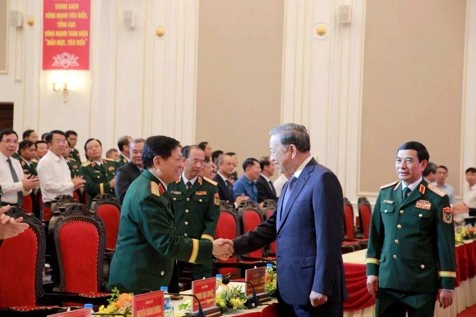 Tổng Bí thư Tô Lâm cùng các đồng chí lãnh đạo, nguyên lãnh đạo Bộ Quốc phòng; lãnh đạo Tổng cục Công nghiệp quốc phòng.