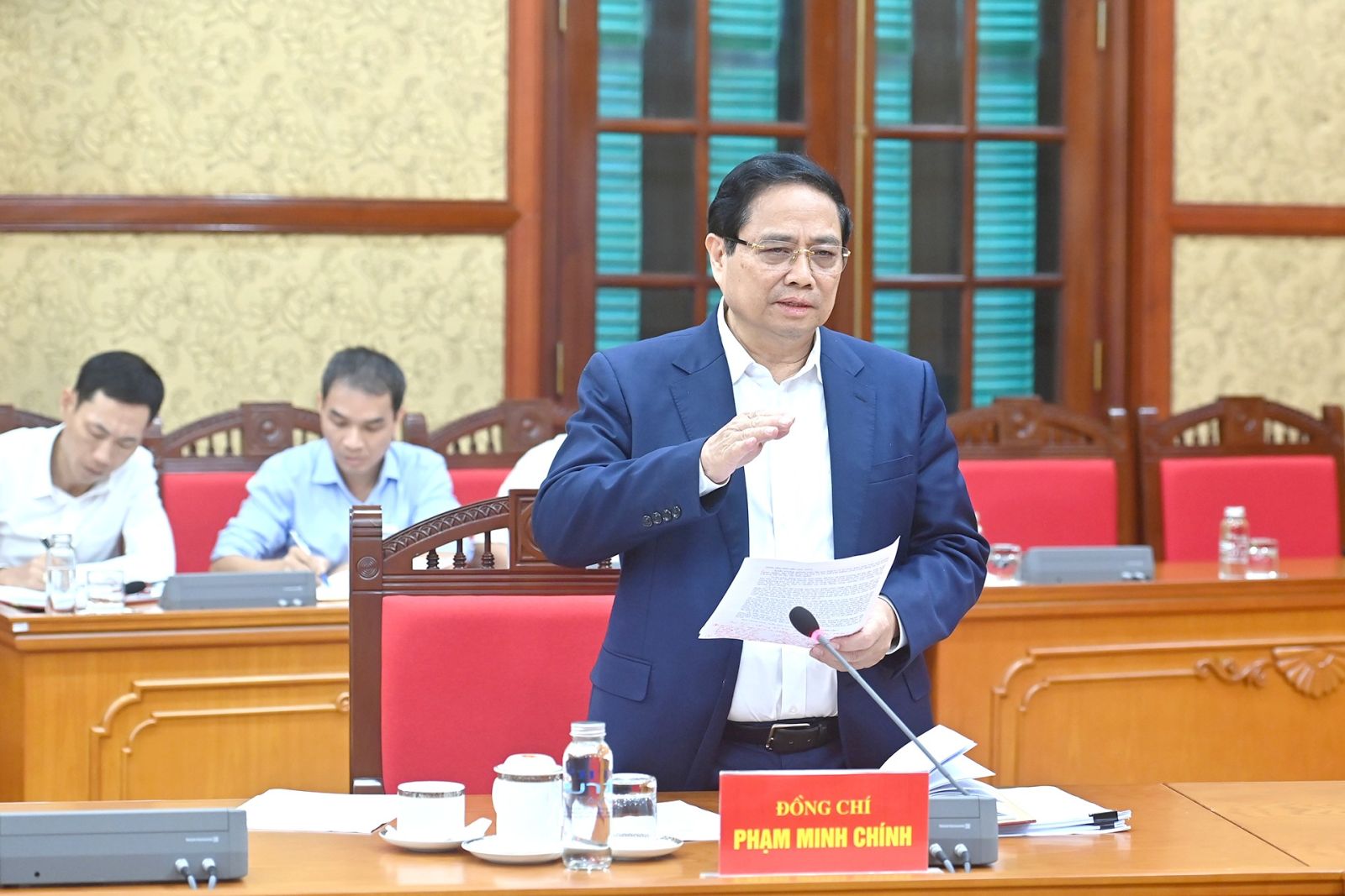 Đồng chí Phạm Minh Chính, Ủy viên Bộ Chính trị, Bí thư Đảng ủy Chính phủ, Thủ tướng Chính phủ phát biểu tại cuộc làm việc.