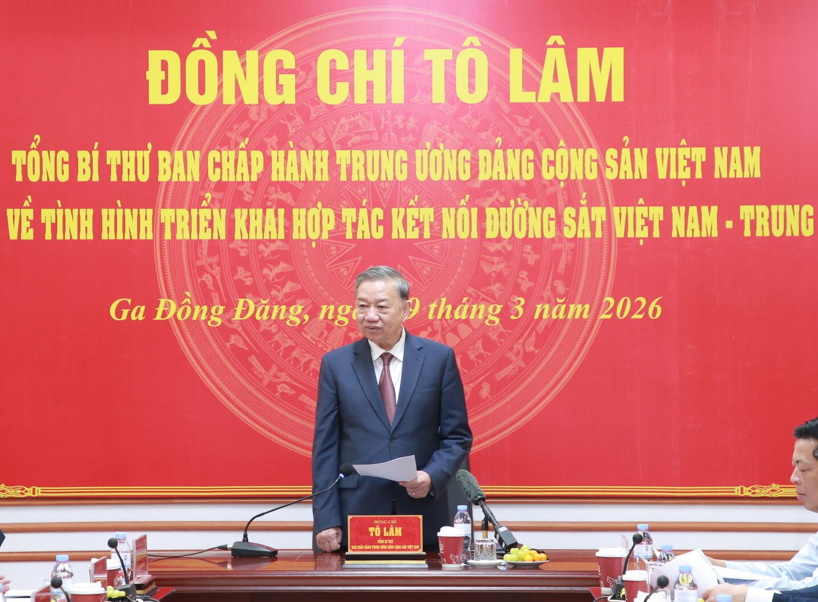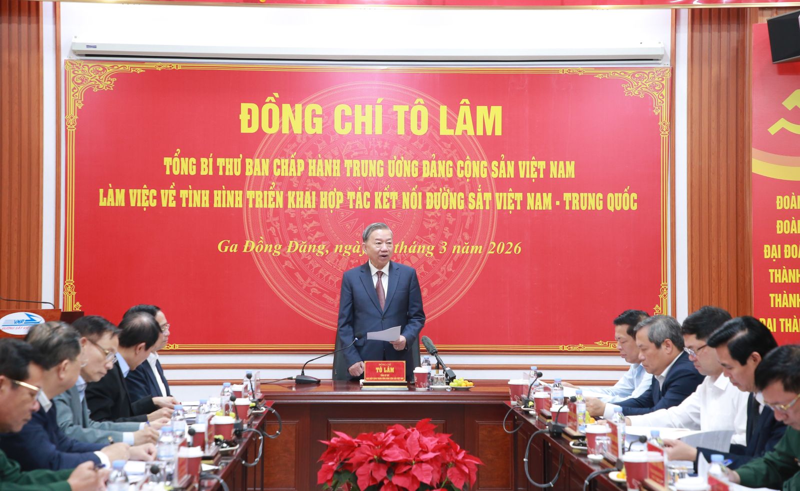 (ĐCSVN) - Sáng 19/3, tại ga Đồng Đăng, tỉnh Lạng Sơn, Tổng Bí thư Tô Lâm chủ trì buổi làm việc với một số bộ, cơ quan trung ương và địa phương về tình hình triển khai hợp tác kết nối đường sắt Việt Nam - Trung Quốc.