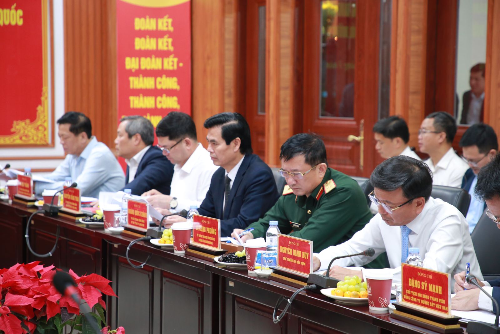 Tổng Bí thư Tô Lâm, Thủ tướng Chính phủ Phạm Minh Chính và các đồng chí Lãnh đạo nghe báo cáo về các dự án đường sắt.