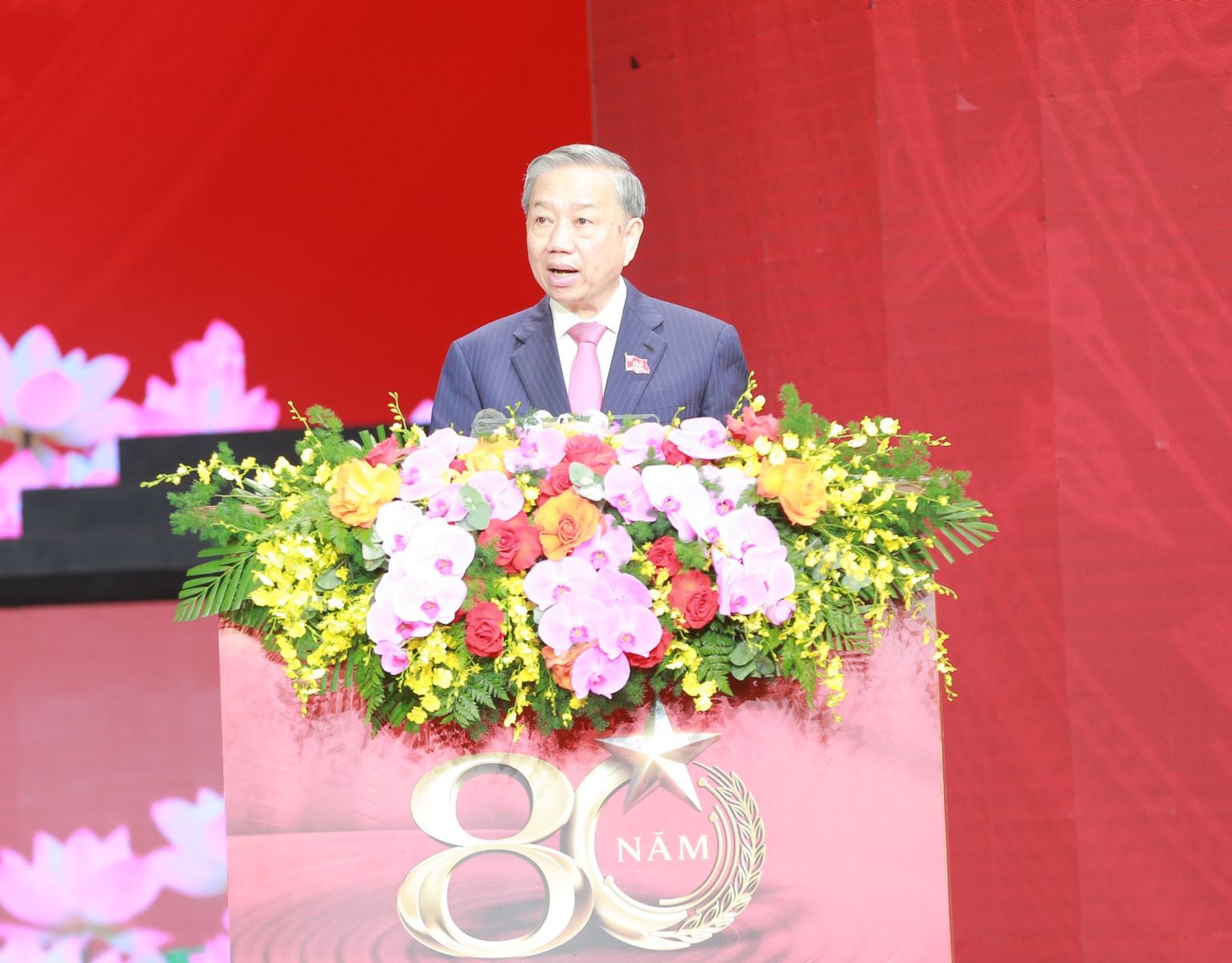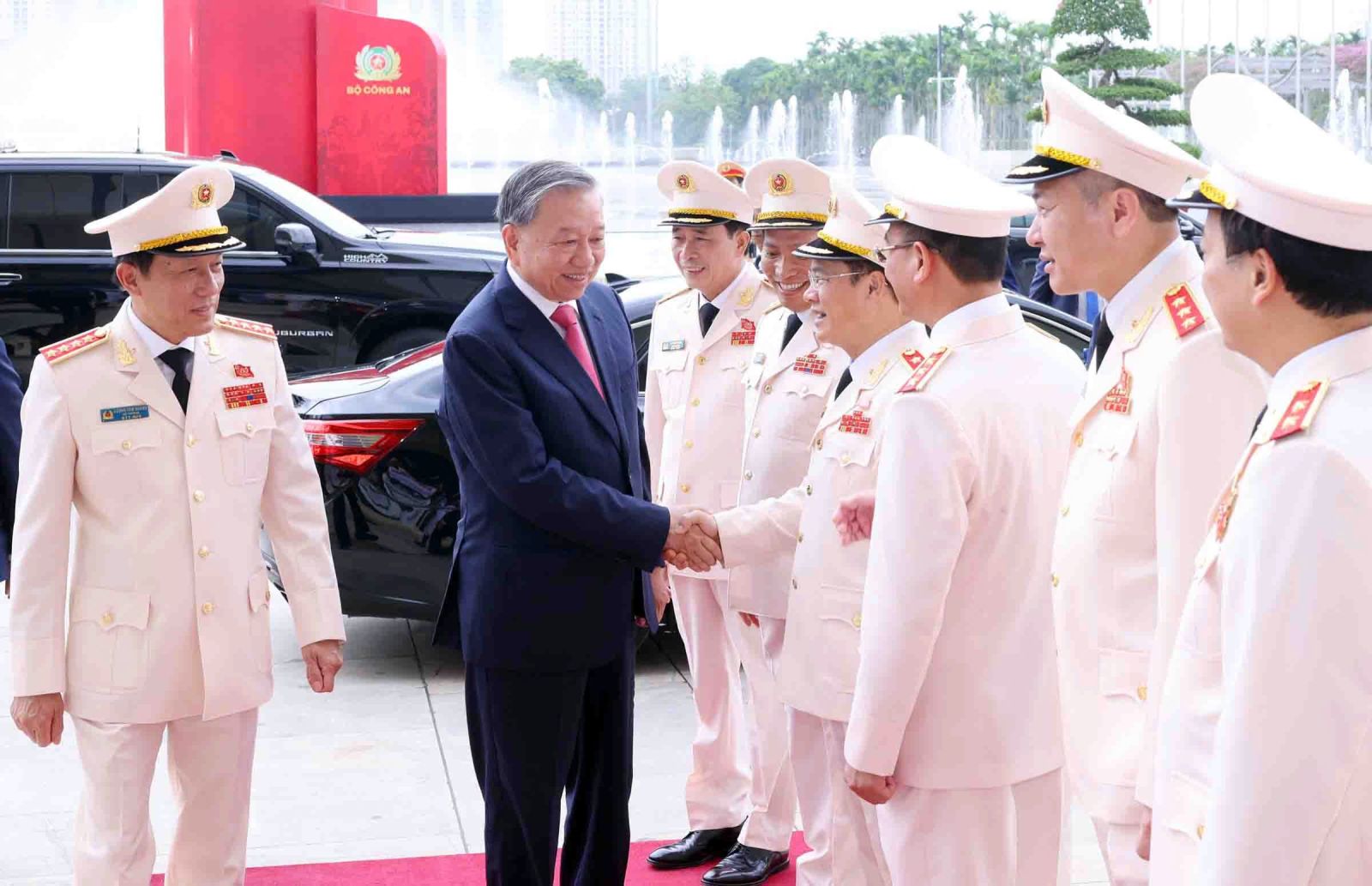 Ảnh: Tổng Bí thư Tô Lâm và các đồng chí lãnh đạo Đảng, Nhà nước dự Lễ kỷ niệm 80 năm Ngày truyền thống Công an nhân dân Việt Nam