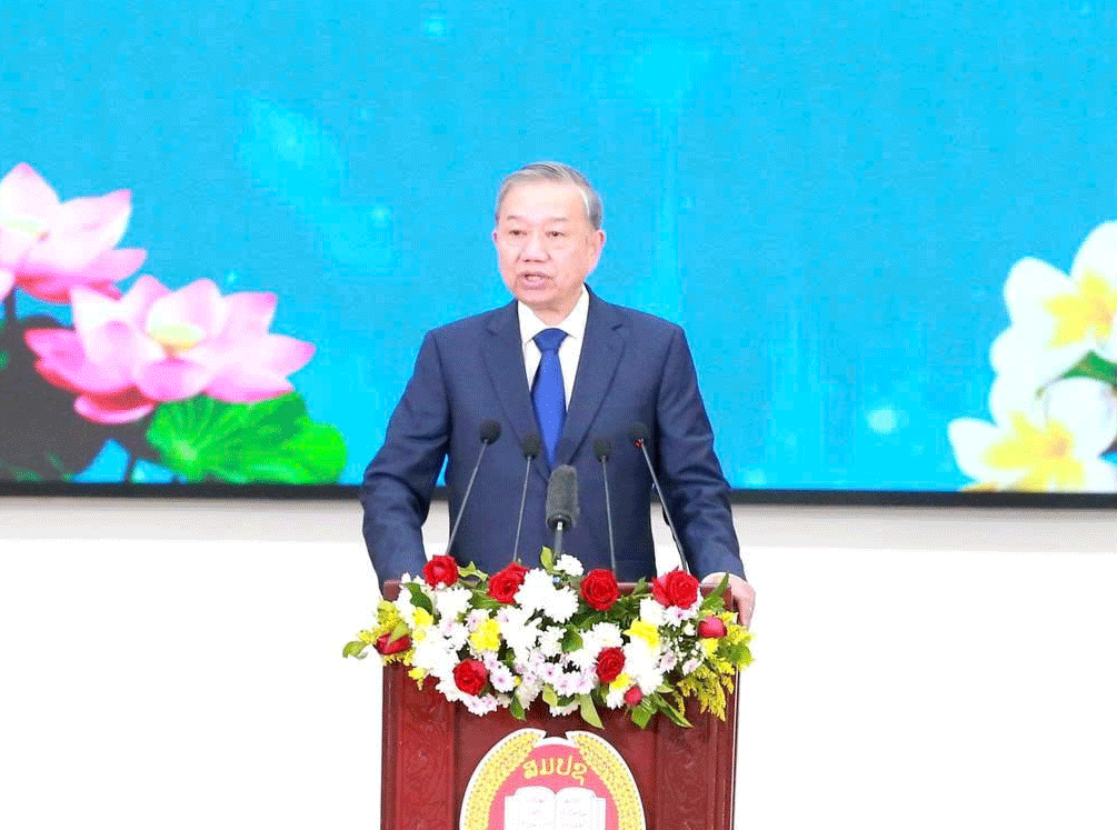 Tổng Bí thư Tô Lâm nhấn mạnh: "Tình đoàn kết đặc biệt Việt - Lào không chỉ là tài sản của hai dân tộc, mà còn là một trụ cột ổn định cho cả tiểu vùng sông Mê Công, cho ASEAN, cho hoà bình, hợp tác, phát triển ở khu vực và thế giới".