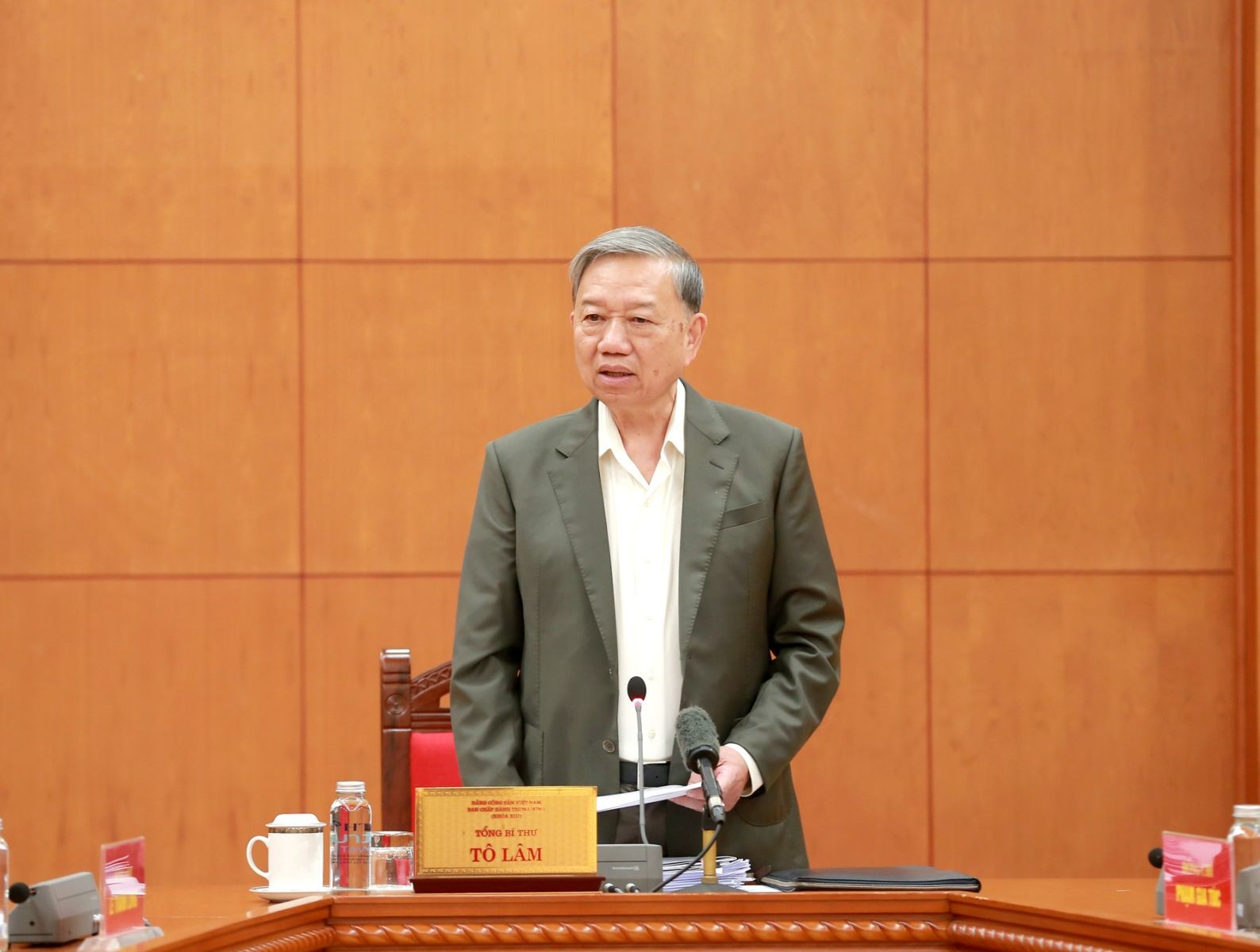 Tổng Bí thư Tô Lâm phát biểu tại cuộc làm việc.