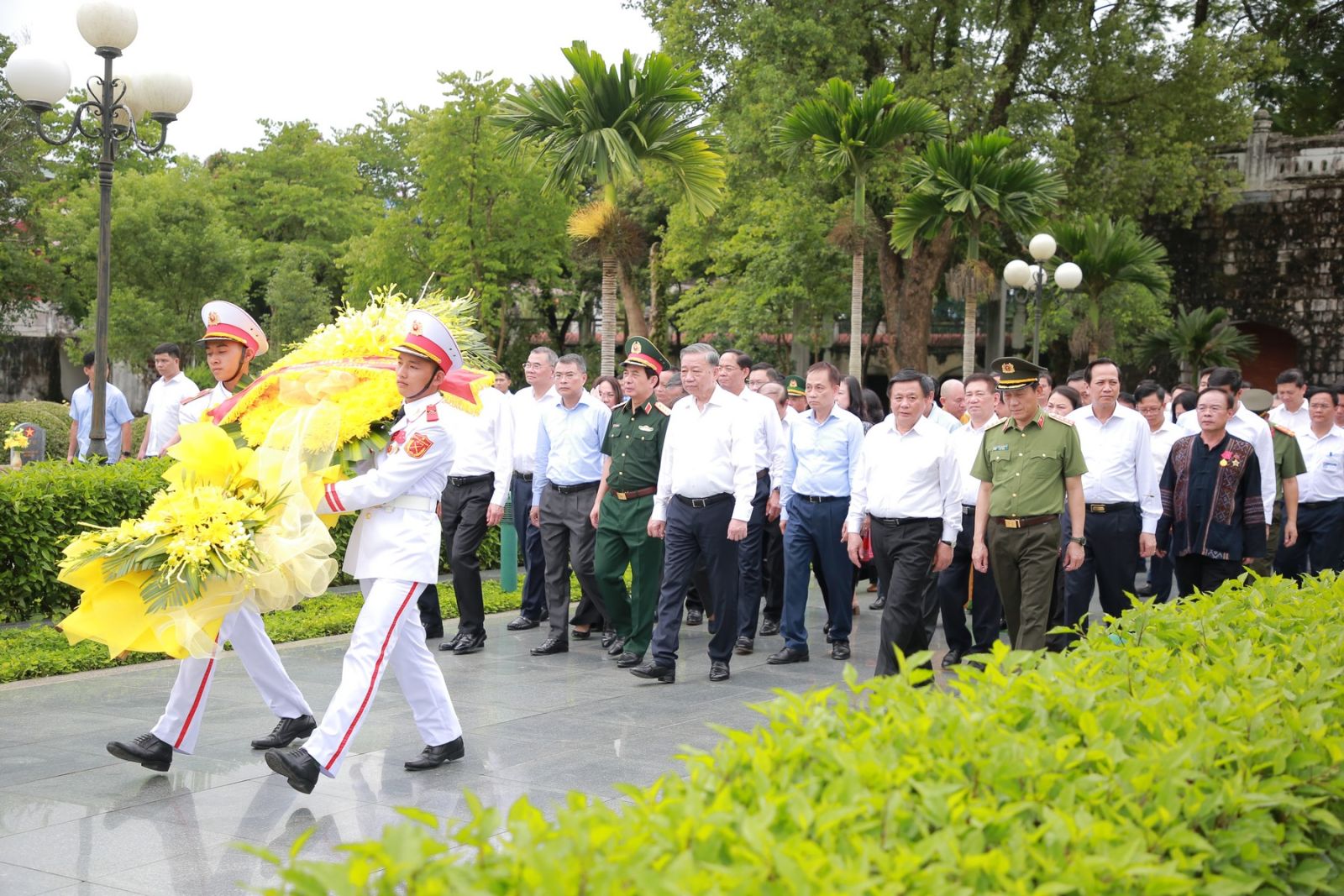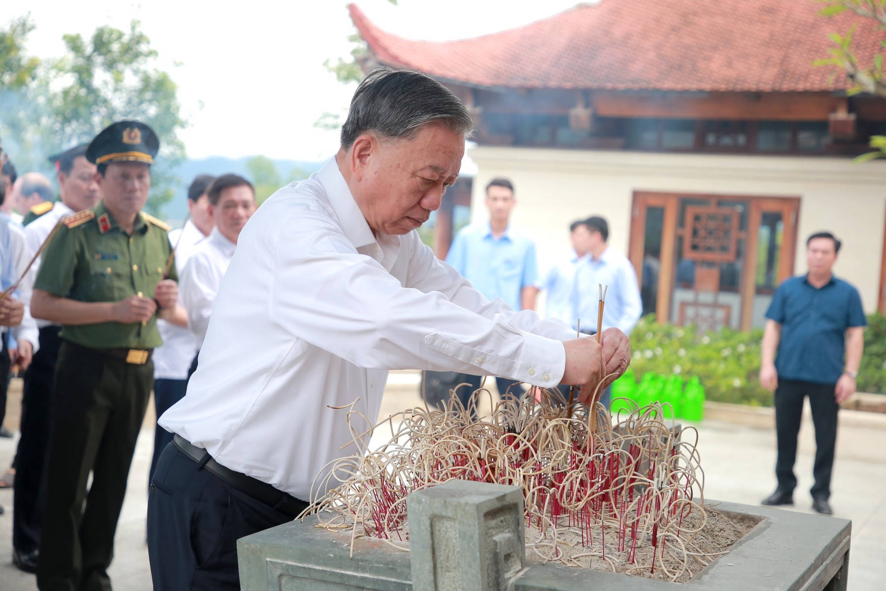 Trong không khí trang nghiêm và xúc động, Tổng Bí thư Tô Lâm và Đoàn công tác đã thành kính dâng hoa, dâng hương tưởng nhớ và bày tỏ lòng biết ơn vô hạn Chủ tịch Hồ Chí Minh – Anh hùng giải phóng dân tộc Việt Nam, Nhà văn hóa kiệt xuất; tưởng nhớ Đại tướng Võ Nguyên Giáp – Người anh cả của Quân đội nhân dân Việt Nam, cùng cán bộ, chiến sĩ, thanh niên xung phong, dân công hỏa tuyến, quân và dân cả nước đã anh dũng chiến đấu, hy sinh làm nên chiến thắng “lừng lẫy năm châu, chấn động địa cầu”.