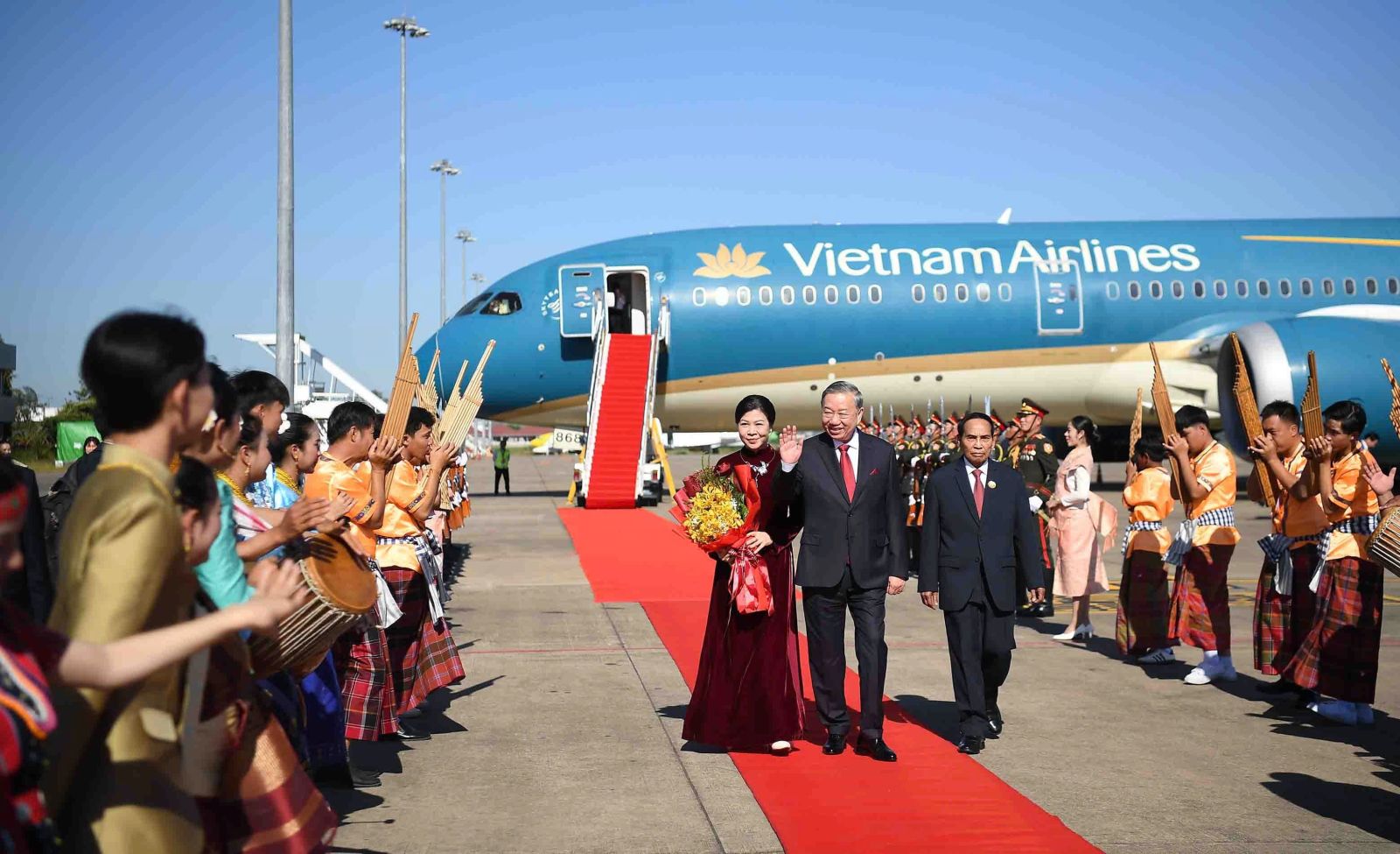 Tổng Bí thư Tô Lâm và Phu nhân cùng Đoàn đại biểu cấp cao Việt Nam thăm cấp Nhà nước Lào và dự Lễ kỷ niệm 50 năm Quốc khánh Lào từ ngày 1-2/12 theo lời mời của Tổng Bí thư, Chủ tịch nước Lào Thongloun Sisoulith và Phu nhân.