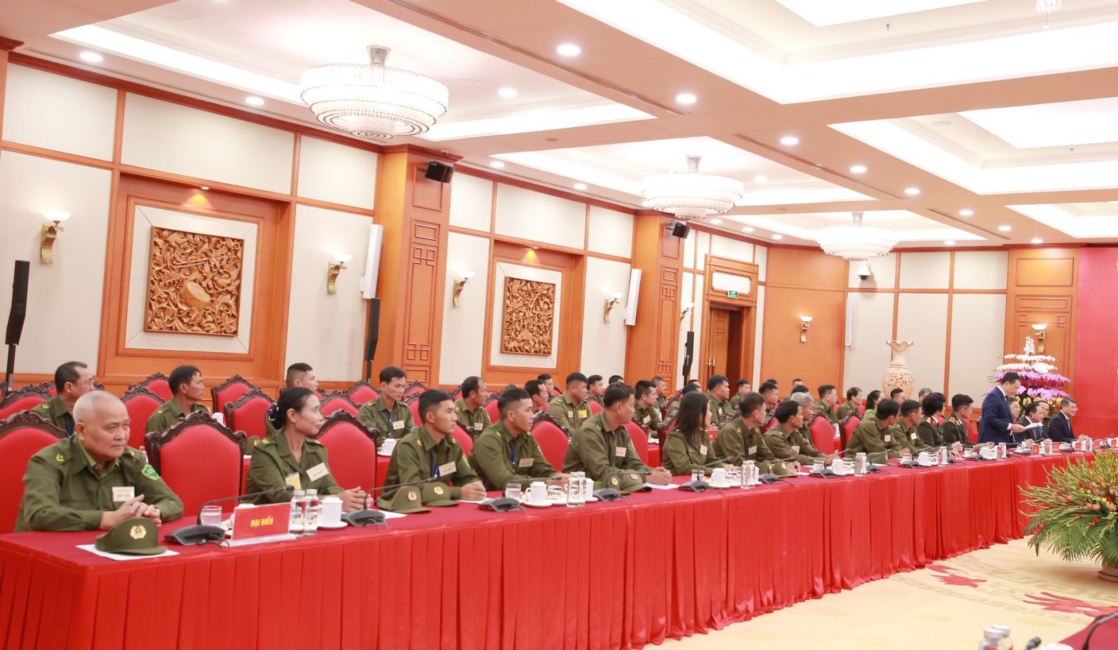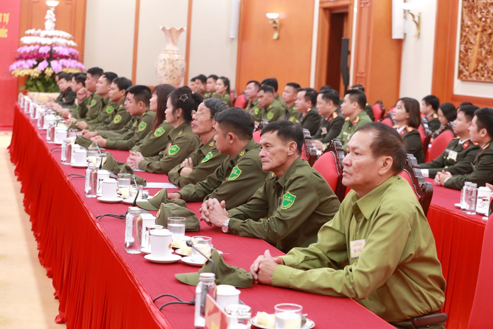 Thay mặt lãnh đạo Đảng, Nhà nước, Tổng Bí thư ghi nhận, biểu dương những tấm gương tiêu biểu tham gia bảo vệ an ninh, trật tự không quản ngại hiểm nguy cứu người bị nạn; chăm lo các hoàn cảnh khó khăn; thuyết phục, đưa người lầm lỗi trở về cuộc sống bình thường; nhiều tấm gương gan dạ, dũng cảm tham gia các vụ việc có vũ khí nguy hiểm; cùng với đó đã vượt qua khó khăn ngay từ trong gia đình để thực hiện nhiệm vụ của làng, của xã, vì trách nhiệm, vì bình yên cuộc sống của nhân dân mà điển hình là 70 tập thể, cá nhân dự buổi gặp mặt hôm nay.