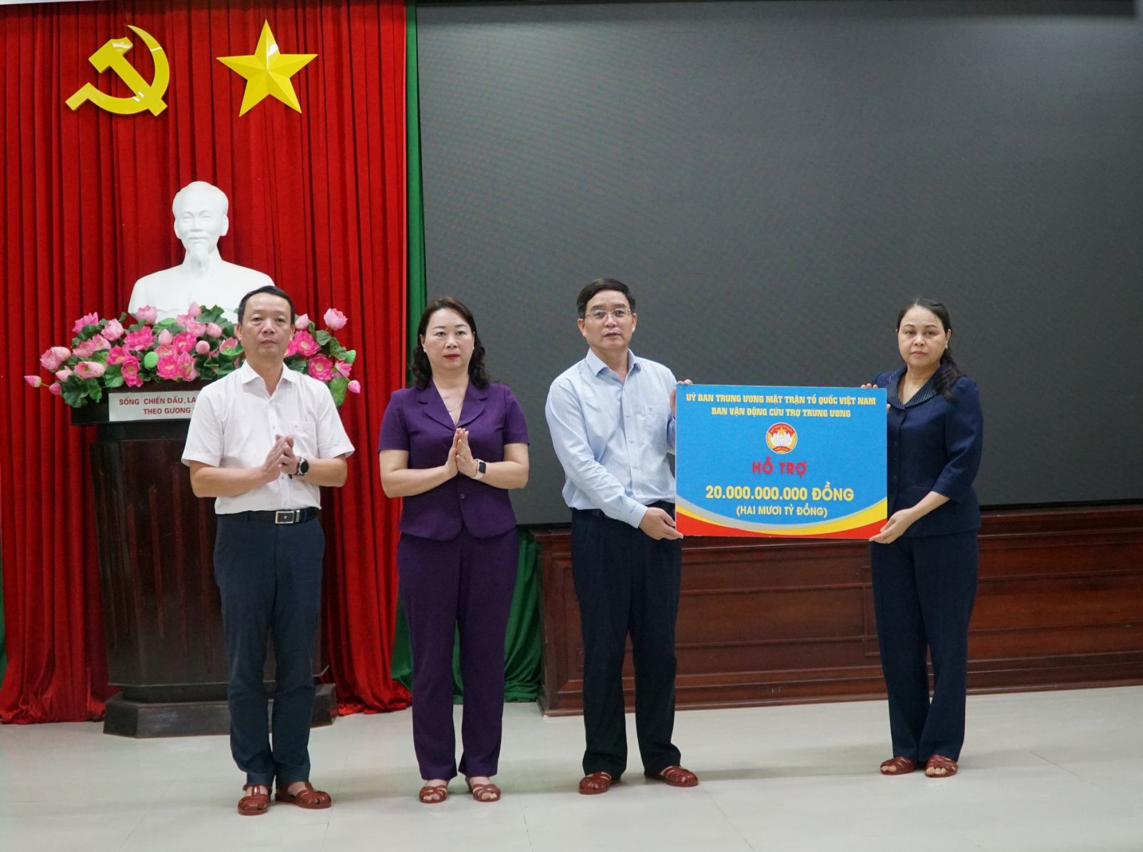 Phó Chủ tịch, Tổng Thư ký Ủy ban Trung ương Mặt trận Tổ quốc Việt Nam Nguyễn Thị Hà đã trao tặng quà hỗ trợ 20 tỷ đồng cho nhân dân thành phố Huế.