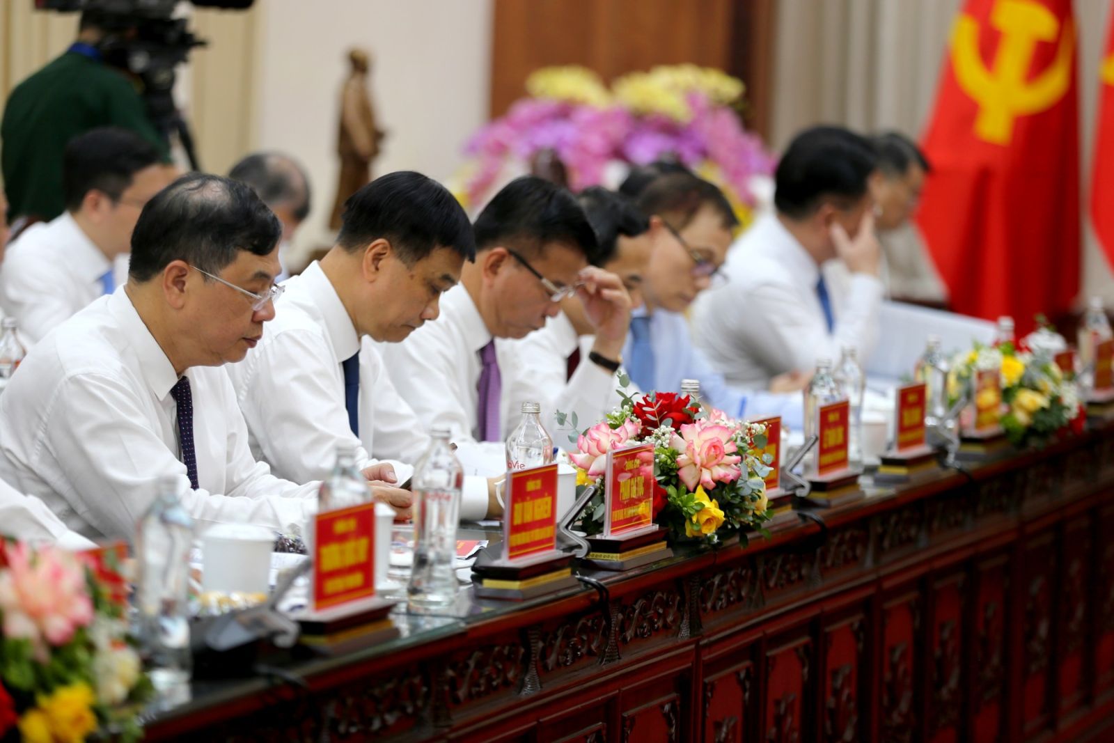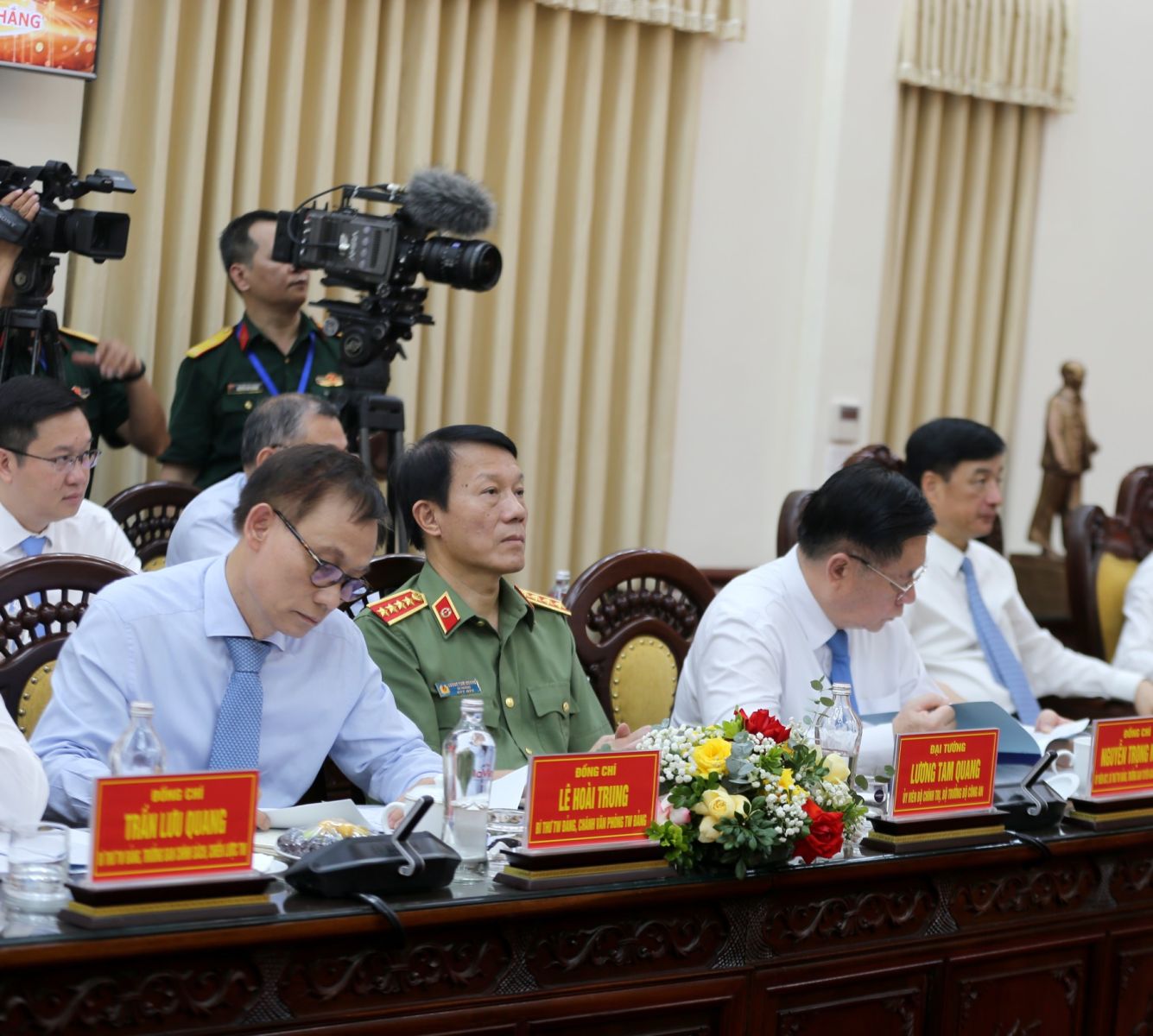 Dự buổi làm việc có các đồng chí: Lê Minh Hưng, Ủy viên Bộ Chính trị, Bí thư Trung ương Đảng, Trưởng Ban Tổ chức Trung ương; Nguyễn Duy Ngọc, Ủy viên Bộ Chính trị, Bí thư Trung ương Đảng, Chủ nhiệm Ủy ban Kiểm tra Trung ương; Nguyễn Trọng Nghĩa, Ủy viên Bộ Chính trị, Bí thư Trung ương Đảng, Trưởng Ban Tuyên giáo và Dân vận Trung ương; Đại tướng Lương Tam Quang, Ủy viên Bộ Chính trị, Bộ trưởng Bộ Công an; Lê Hoài Trung, Bí thư Trung ương Đảng, Chánh Văn phòng Trung ương Đảng; Trần Lưu Quang, Bí thư Trung ương Đảng, Trưởng Ban Chính sách, chiến lược Trung ương; Lê Thành Long, Ủy viên Trung ương Đảng, Phó Thủ tướng Chính phủ; Vũ Hồng Thanh, Ủy viên Trung ương Đảng, Phó Chủ tịch Quốc hội; Phạm Gia Túc, Ủy viên Trung ương Đảng, Phó Chánh Văn phòng Trung ương Đảng; Bùi Văn Nghiêm, Ủy viên Trung ương Đảng, Phó Trưởng Ban Nội chính Trung ương; Đại tướng Nguyễn Tân Cương, Ủy viên Trung ương Đảng, Ủy viên Thường vụ Quân ủy Trung ương, Tổng Tham mưu trưởng QĐND Việt Nam, Thứ trưởng Bộ Quốc phòng.