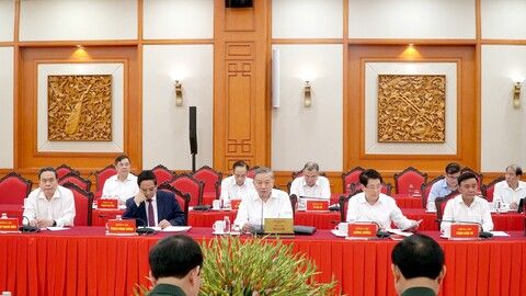 (ĐCSVN)- Chiều 16/12, tại Trụ sở Trung ương Đảng, Tổng Bí thư Tô Lâm chủ trì buổi làm việc với đại diện các ban, bộ, ngành Trung ương về tình hình thực hiện chủ trương, chính sách, chế độ đối với người có công với cách mạng; công tác tìm kiếm, quy tập và xác định danh tính hài cốt liệt sỹ. Cùng dự có đồng chí Phạm Thị Thanh Trà, Ủy viên Trung ương Đảng, Phó Thủ tướng Chính phủ và các đồng chí Ủy viên Trung ương Đảng, đại diện lãnh đạo các ban, bộ, ngành Trung ương.