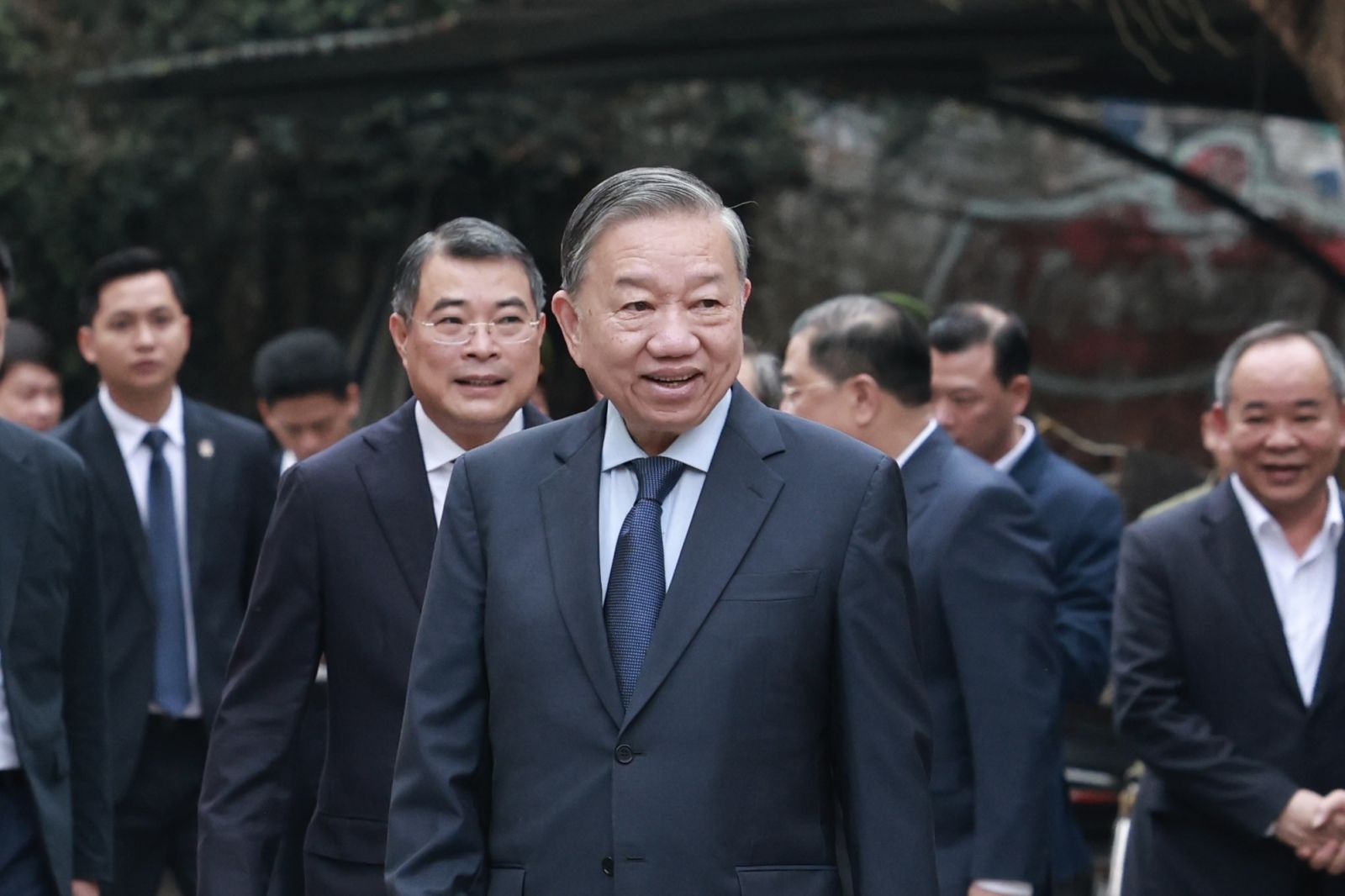 Tổng Bí thư Tô Lâm và các đồng chí lãnh đạo tới khu vực bỏ phiếu số 02, phường Ba Đình, Thành phố Hà Nội trong ngày bầu cử.