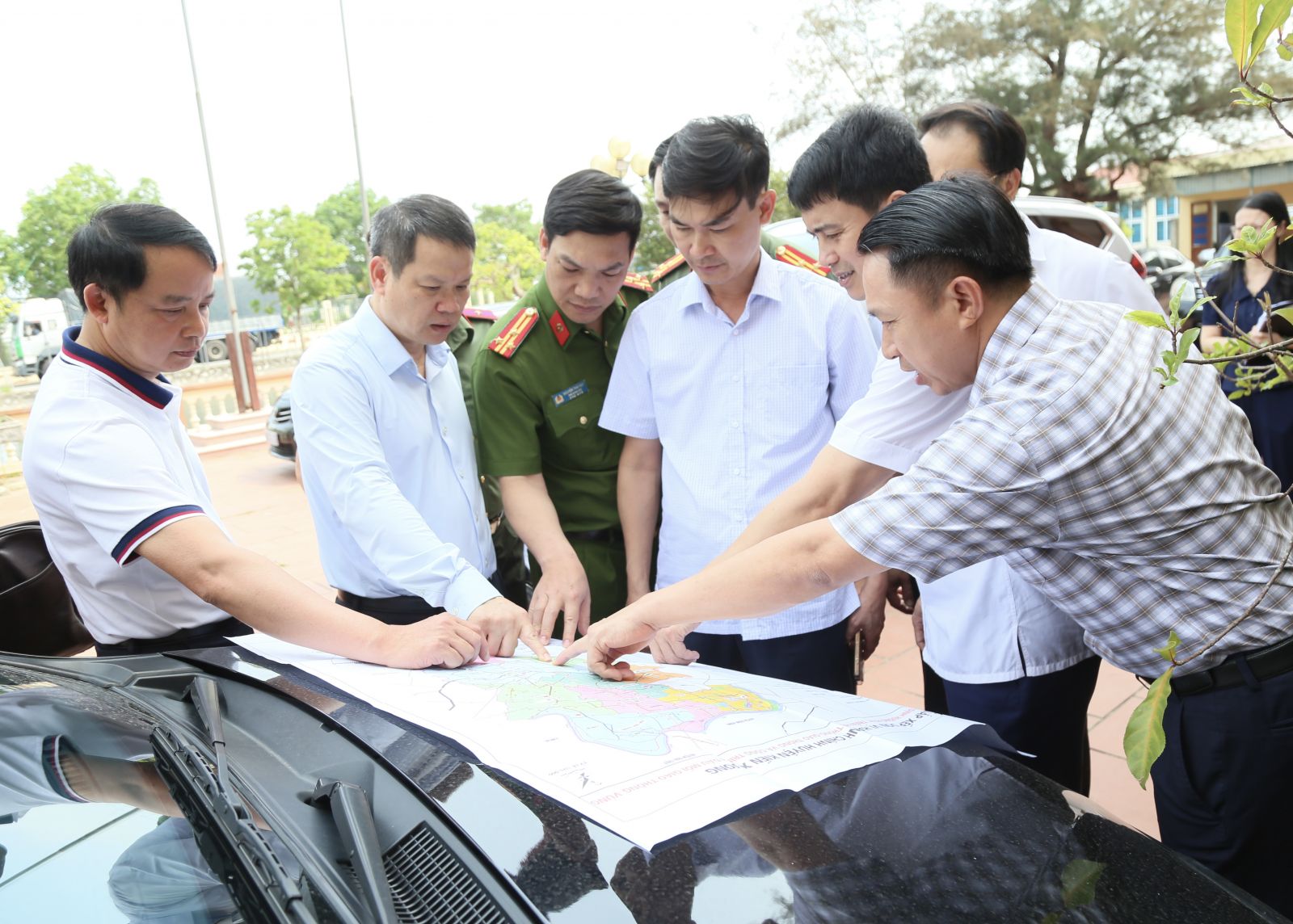 Đồng chí Nguyễn Mạnh Hùng, Phó Bí thư Tỉnh ủy, Chủ tịch UBND tỉnh kiểm tra công tác chuẩn bị phương án bố trí nơi đặt trụ sở đơn vị hành chính tại xã Vũ Quý.