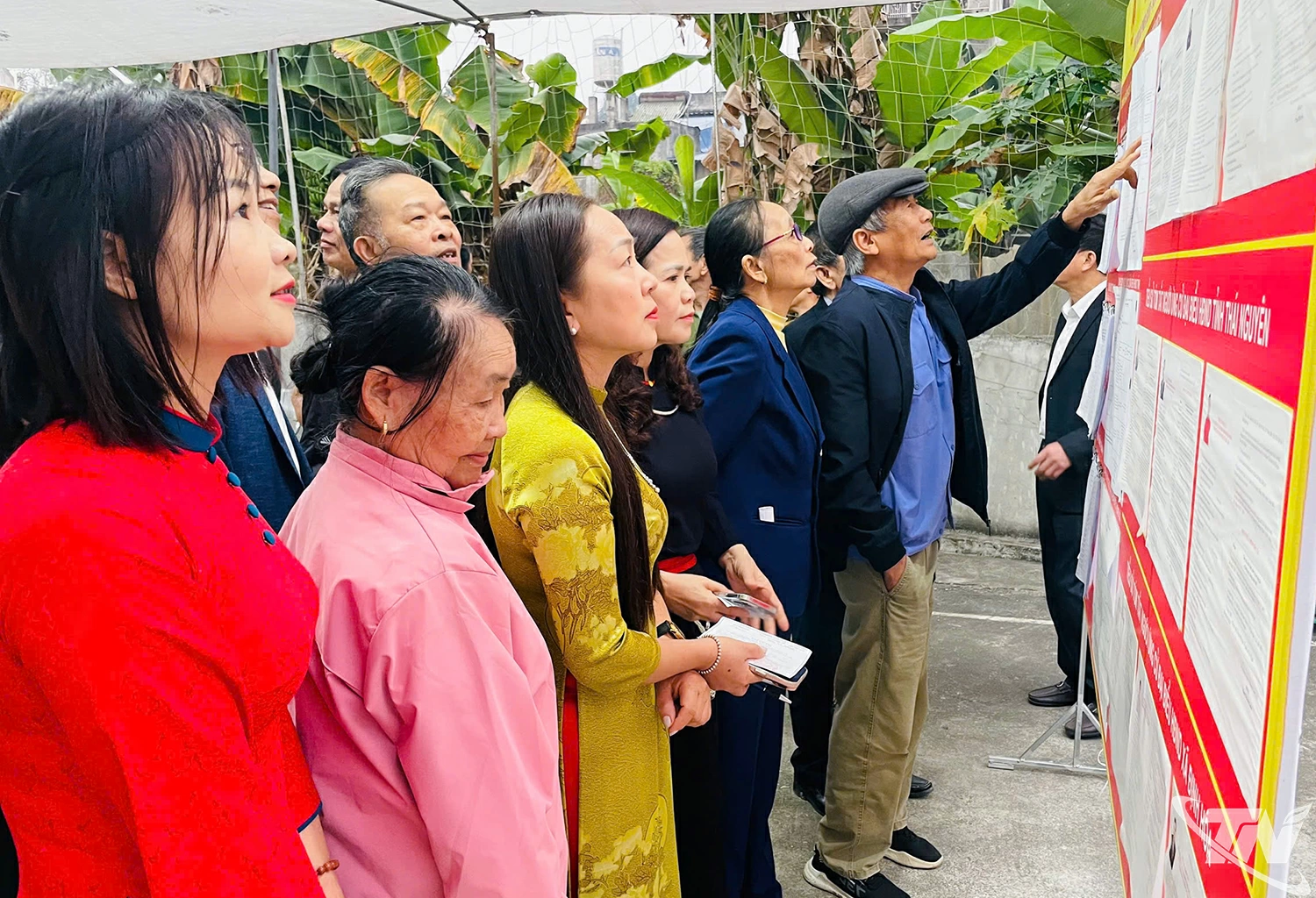 | Cử tri là người dân tộc thiểu số tại xã Phúc Thuận nghiên cứu thông tin các ứng cử viên. |