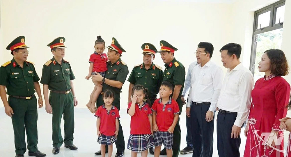 | Lãnh đạo Bộ Tổng Tham mưu và các đại biểu dự lễ khánh thành, bàn giao hai công trình trường học tại xã Phú Đình. |