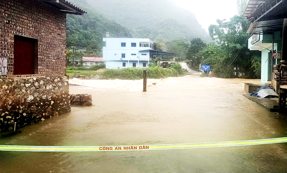 | Nước dâng cao tại cầu tràn thuộc khu vực chợ Lèng, xã Đồng Phúc, chính quyền địa phương đã cảnh báo, tạm cấm người và phương tiện lưu thông để bảo đảm an toàn. |